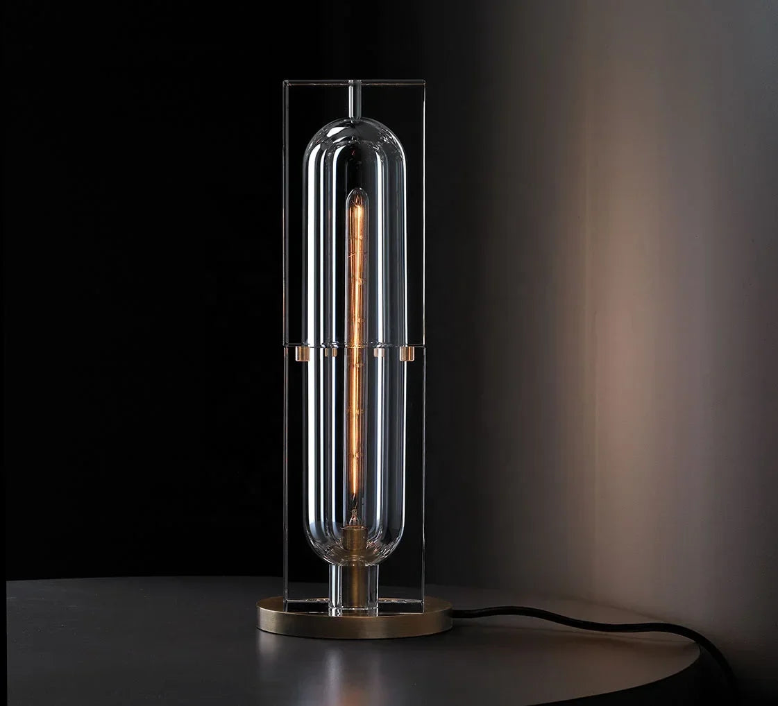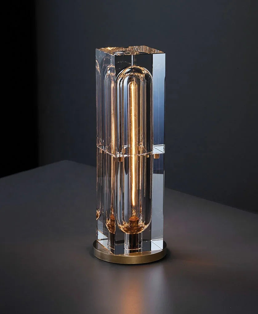 Sleek, sculptural, and undeniably striking, this modern table lamp is a luminous statement in any space. Crafted from crystal-clear acrylic with a glowing tubular core, it radiates a warm, ambient light while doubling as a contemporary art piece. The geometric form and reflective surfaces create stunning visual depth, perfect for elevating console tables, bedside setups, or office desks. Set on a minimal round base for added stability and style. Bold design meets atmospheric lighting, with precision in every detail.