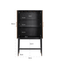 Measuring 182 x 97 x 45 cm (h x w x d) and weighing 71.5 KG, this cabinet is sturdy and durable. The gold hang and locks add a touch of glamour, while the black interior color complements the overall design. The base is made of old oak, and the hardware is finished in antique gold, adding to the luxurious feel of the cabinet.