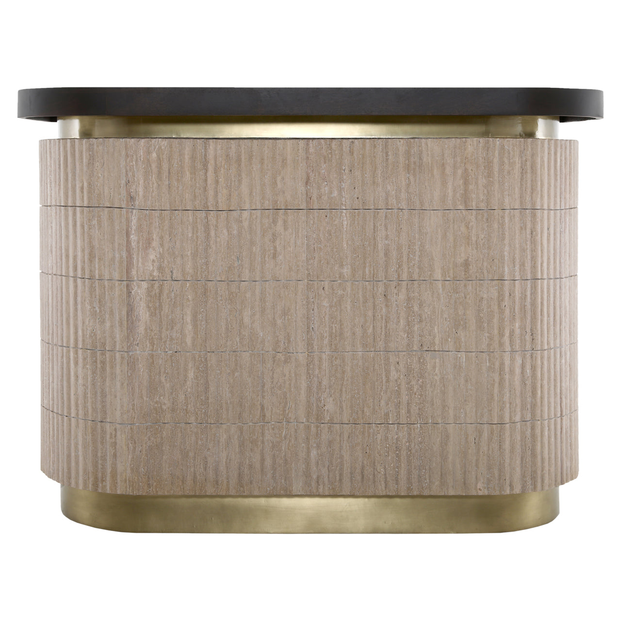 The Martini bar is a refined and modern piece, crafted from a combination of travertine and wood. The design features clean lines and the natural beauty of travertine, giving the bar a subtle texture and warm, earthy tones. The wooden top provides a sturdy and elegant surface, ideal for serving drinks or as a decorative space. The combination of these materials creates a luxurious look, making the Martini bar a stylish and functional addition to any living or entertainment area.
