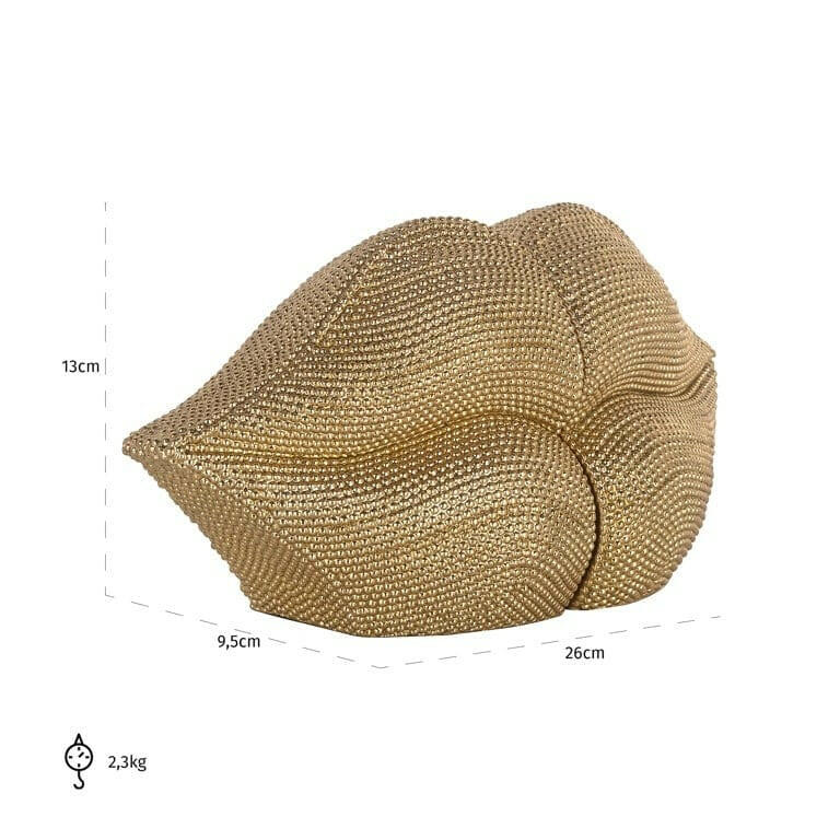 Introducing the Books standard Kiss gold (Gold) from House of Isabella. This luxurious piece of furniture is a must-have for any interior design enthusiast. With its stunning gold finish, it adds a touch of elegance and sophistication to any room. The unit comes in a set of 1, making it a unique and exclusive addition to your home. Measuring at 13.5cm in height, 13.0cm in width, and 9.5cm in depth, it is the perfect size to display your favorite books or decorative items. Made from high-quality polyresin, this product is not only visually appealing but also durable. With a gross weight of 1.8kg, it is sturdy and stable. Don't miss out on this one-of-a-kind piece, order yours today from House of Isabella and enjoy free UK delivery.