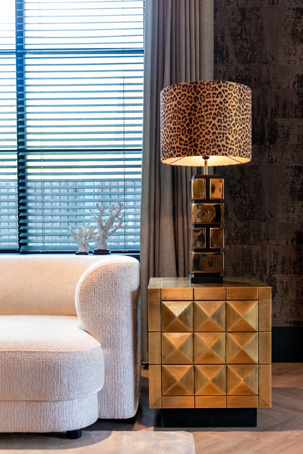 Introducing the Cabinet Collada 3-drawers (Brushed Gold) - a truly unique and luxurious piece of furniture from House of Isabella. This stunning cabinet features three spacious drawers, perfect for storing all your essentials. Made with high-quality brass and MDF materials, this cabinet exudes elegance and sophistication. With a height of 59.5cm, width of 50.0cm, and depth of 45.0cm, it is the perfect size for any room. Plus, with a M3/Cube of 0.2 and a gross weight of 35.1, it is both sturdy and easy to move. Don't miss out on this one-of-a-kind piece - order now and enjoy free UK delivery!