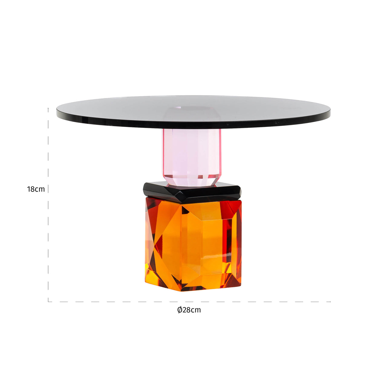 The Feya cakeplate is a striking and stylish decorative object that effortlessly combines luxury with modern design. The base of the stand consists of geometric shapes in rich, contrasting colors, giving the piece a playful yet elegant look. The sleek, round plate offers ample space to present delicacies, jewelry, or other valuable items in a refined manner. Perfect for both festive occasions and daily use, Feya adds a touch of glamour to your interior. It is a true eye-catcher that seamlessly blends functionality and aesthetics.
