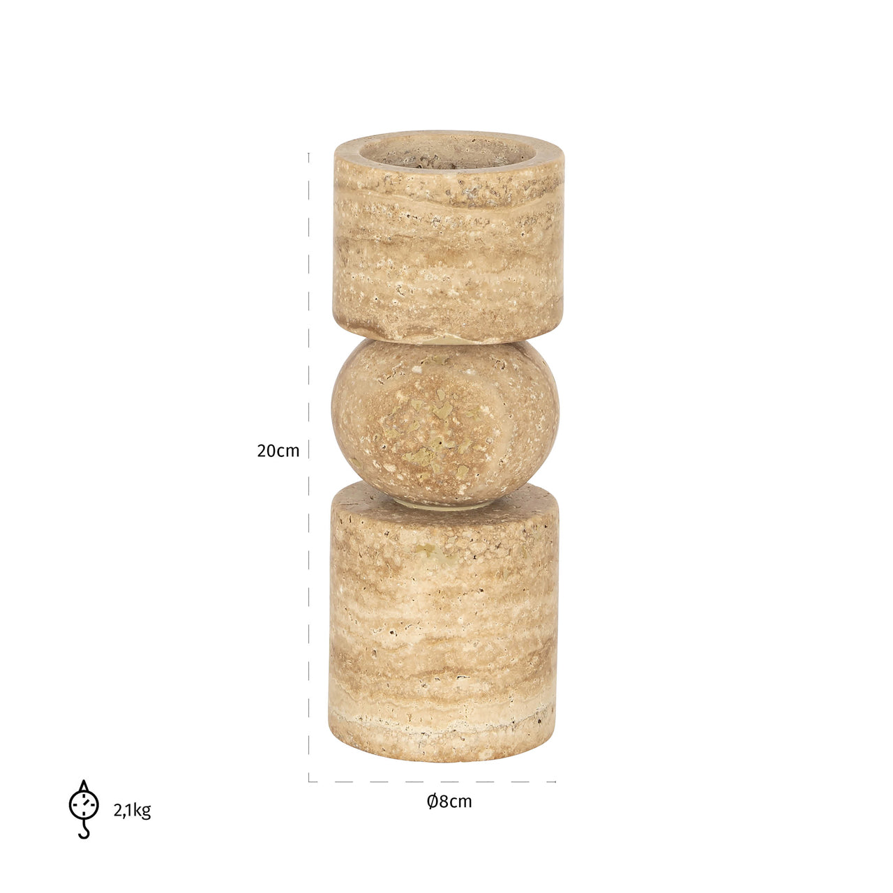Candle holder Alaina combines timeless elegance with a modern twist thanks to its travertine appearance, a design choice that immediately evokes classical architecture and the natural beauty of stone. Crafted from high-quality stone, Alaina not only offers a sturdy and durable structure but also an aesthetic appeal that suits both contemporary and traditional interiors. This candle holder comes in two unique shapes, making it a versatile piece that can be customized to various style preferences. Whether you opt for a single piece or a combination of both shapes, Candle holder Alaina promises to be a striking centerpiece on any table or surface where it is placed, adding warmth, character, and a touch of luxury to your living space.