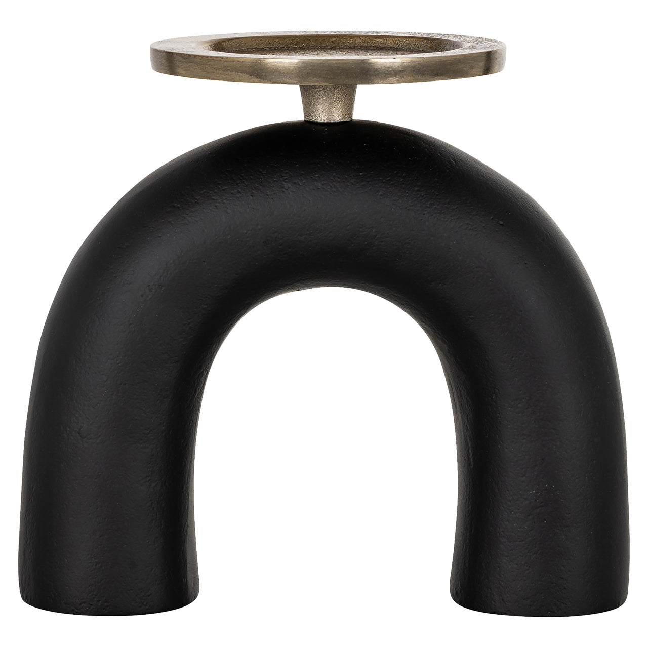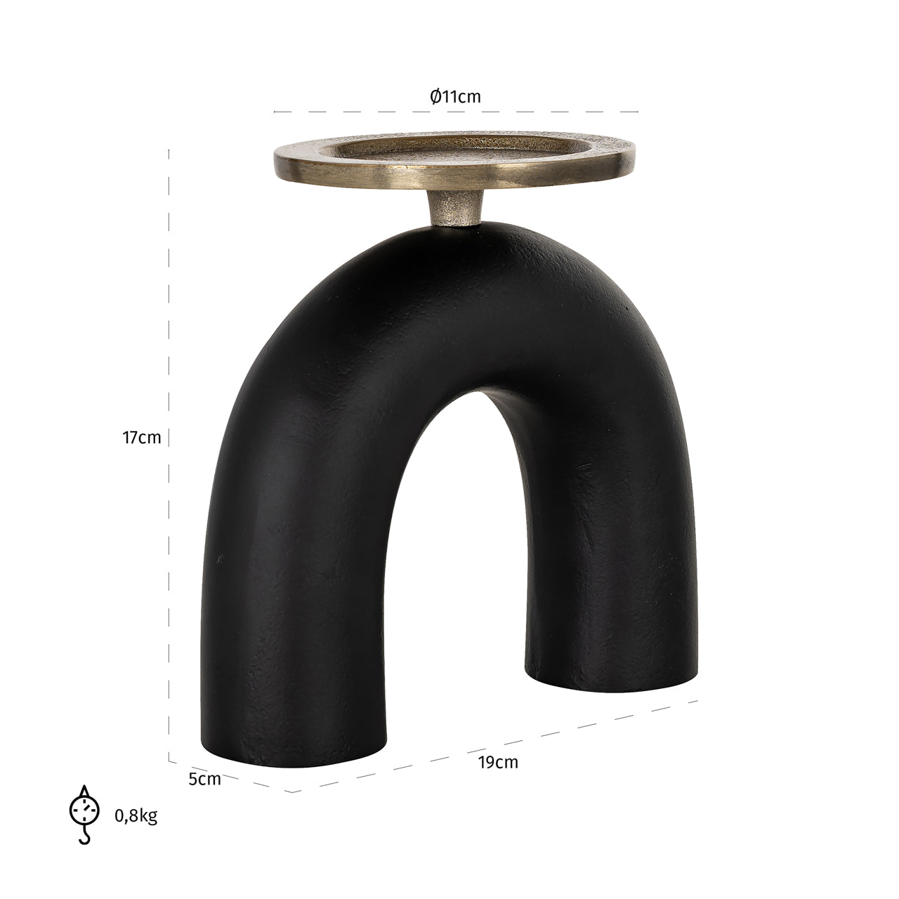 The Livi candle holder is an elegant piece with an organic shape that emphasizes the natural beauty of the design. Made from black aluminum, it has gold-colored accents that add a touch of luxury to the piece. This candle holder radiates both simplicity and refinement and can give any room a chic look. Also available in a bigger variant.