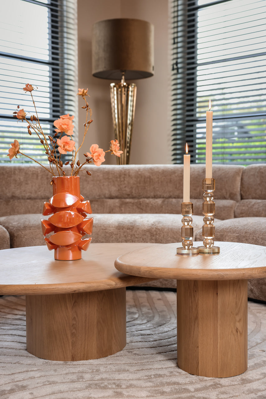 Candle holder Meral is a beautiful addition to any space with its elegant and subtle color. The design is both modern and timeless, effortlessly fitting into various interior styles. The gentle hue of the candle holder exudes calmness and serenity, making it an ideal choice for those looking to enhance their living or workspace with a stylish decorative piece. The candle holder is crafted with attention to detail and craftsmanship, contributing to its refined appearance. Available in both a small and large variant, it offers flexibility to choose the one that best suits your space.
