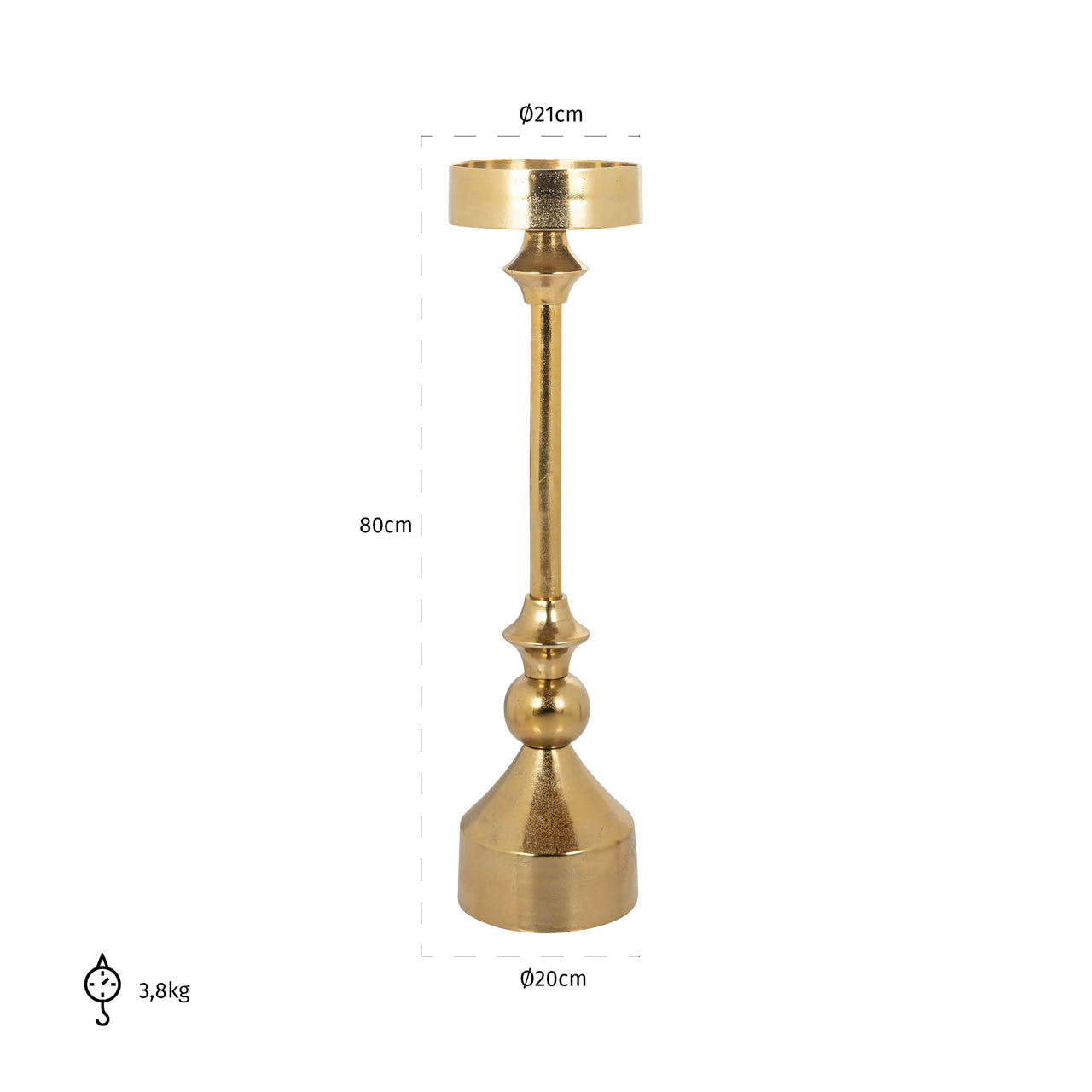 The Presley candlestick is an elegant and stylish accessory, available in both small and large versions. Made from gold-colored aluminum, this candlestick exudes luxury and refinement. The shiny gold-colored material adds a touch of glamour to any space, while the sleek and timeless design ensures the candlestick fits perfectly into various interior styles.