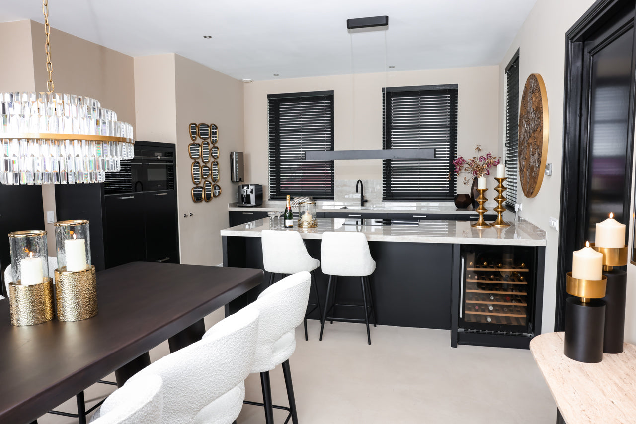 The Desire pendant lamp, made of gold-colored aluminum, is a unique design by Richmond. This pendant lamp adds a touch of glamour and style to any space. The gold-colored aluminum creates a luxurious look and adds a distinctive touch to the lamp. Richmond's unique design makes the Desire pendant lamp a real eye-catcher in your interior. Additionally, the lamp is also available in a smaller version, giving you the option to choose the right size that suits your space. Whether you hang the lamp in the living room, dining room, or bedroom, the Desire pendant lamp with its gold-colored aluminum and unique design is a practical and stylish choice that combines functionality and elegance.