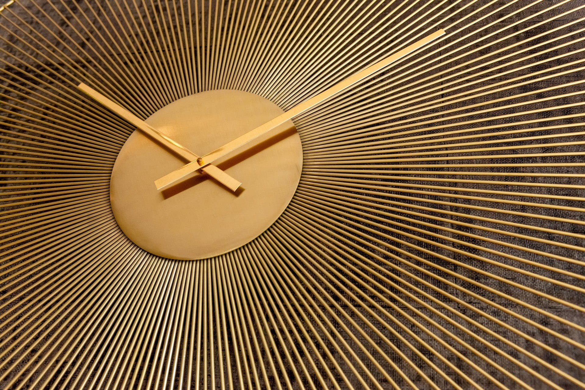 Introducing Clock Audrey (Gold) - a truly unique and luxurious addition to any home. This stunning clock from Richmond Interiors is a true statement piece, with its elegant gold finish and intricate iron design. Standing at 90cm tall and 90cm wide, Clock Audrey is sure to make a bold impression in any room. Its slim 3.5cm depth allows for easy placement on any wall, while its sturdy construction ensures durability. With a gross weight of 9.5kg, this clock is built to last. Add a touch of sophistication to your home with Clock Audrey (Gold) from House of Isabella.