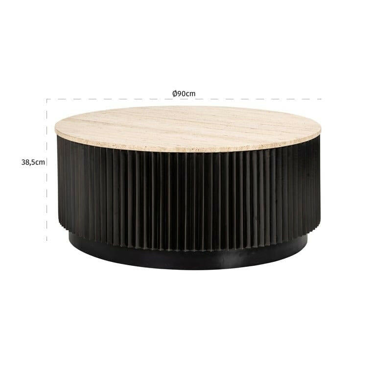Introducing the Coffee table Hampton 90Ø, a truly unique and luxurious addition to any home. This stunning piece from Richmond Interiors is a must-have for those looking to elevate their interior design. With its sleek and modern design, this coffee table is sure to be a focal point in any room. Made from high-quality materials such as MDF, metal, and travertine, this table is not only stylish but also durable. With a height of 38.5cm and a width and depth of 90cm, it is the perfect size for any living space. Plus, with free UK delivery from House of Isabella, it's never been easier to add a touch of luxury to your home.