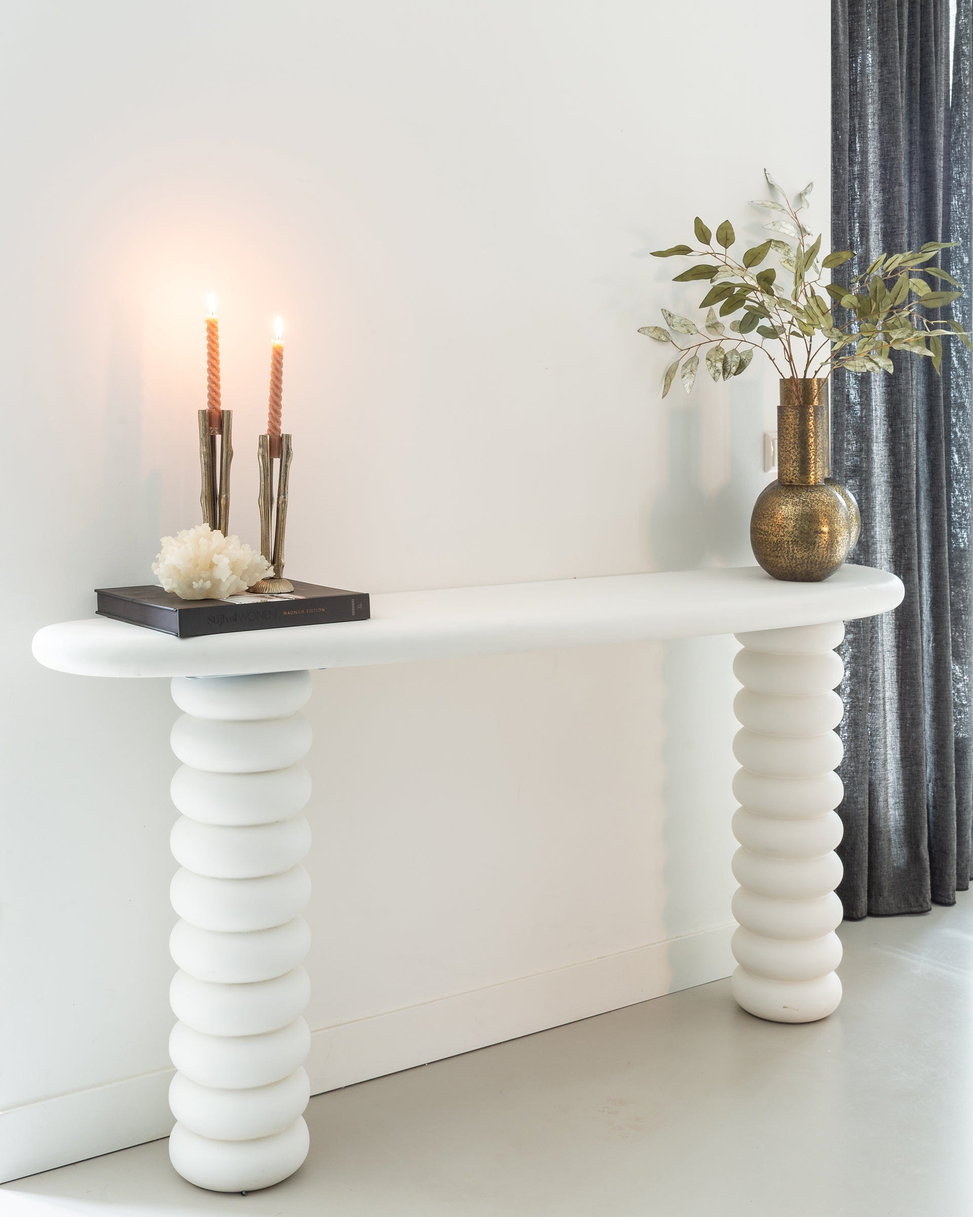 The Console Bloomstone from House of Isabella is a truly unique piece of furniture that will add a touch of luxury to any interior. Made from high-quality MDF and finished with light eco plaster, this console is not only visually stunning but also environmentally friendly. With its sleek and modern design, it will effortlessly blend in with any decor. Standing at 82cm tall and measuring 170cm in width and 40cm in depth, this console offers ample space for displaying your favourite items. Plus, with free UK delivery, it's never been easier to add a touch of elegance to your home.