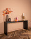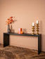 With dimensions of 80 x 200 x 45 cm (H x W x D) and a weight of 41 KG, this console is the perfect size for any space. The base is made of oak veneer and the finishing colour is a sleek black, giving it a modern and sophisticated look. The exterior is also black, with a non-antique finishing for a clean and contemporary feel.