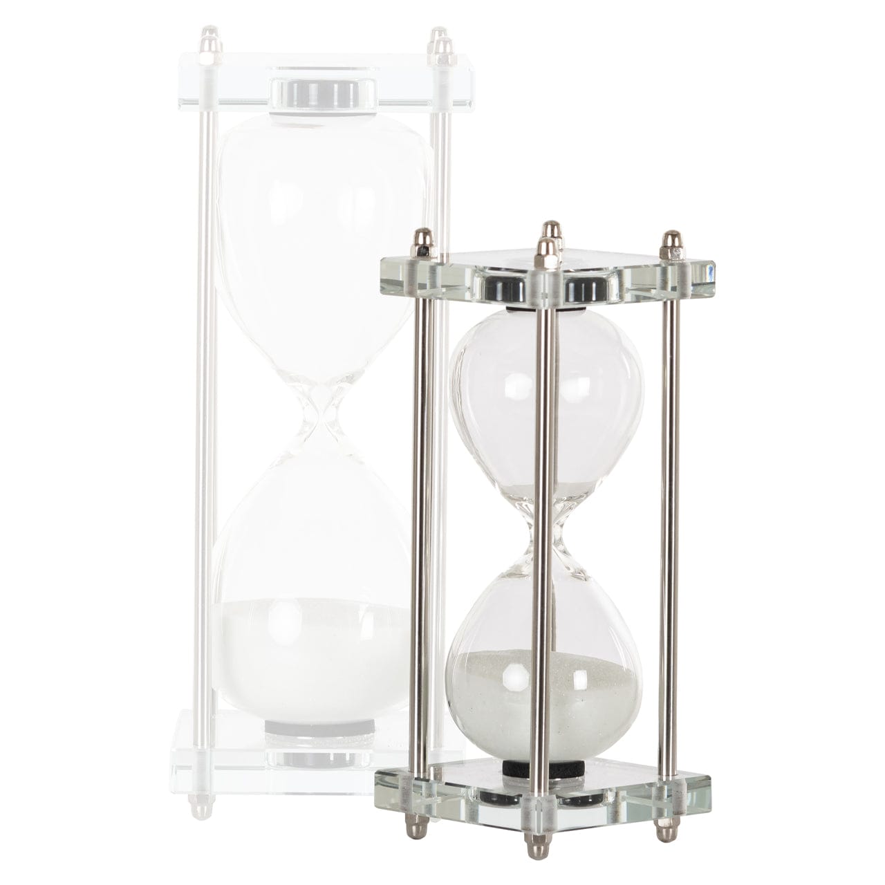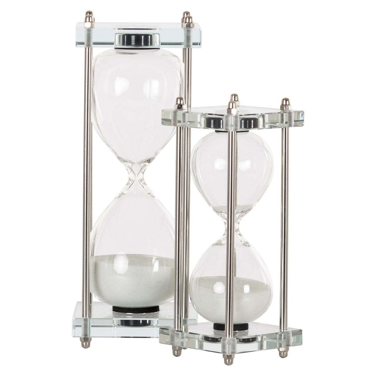 The hourglass Gigi is functional and well-designed. The golden details add a touch of elegance to the overall design. It serves as a reminder of the passage of time as the sand moves through the glass. It is available in two sizes, small and large, and can be placed in various spaces such as an office or living room. It is both practical and decorative.