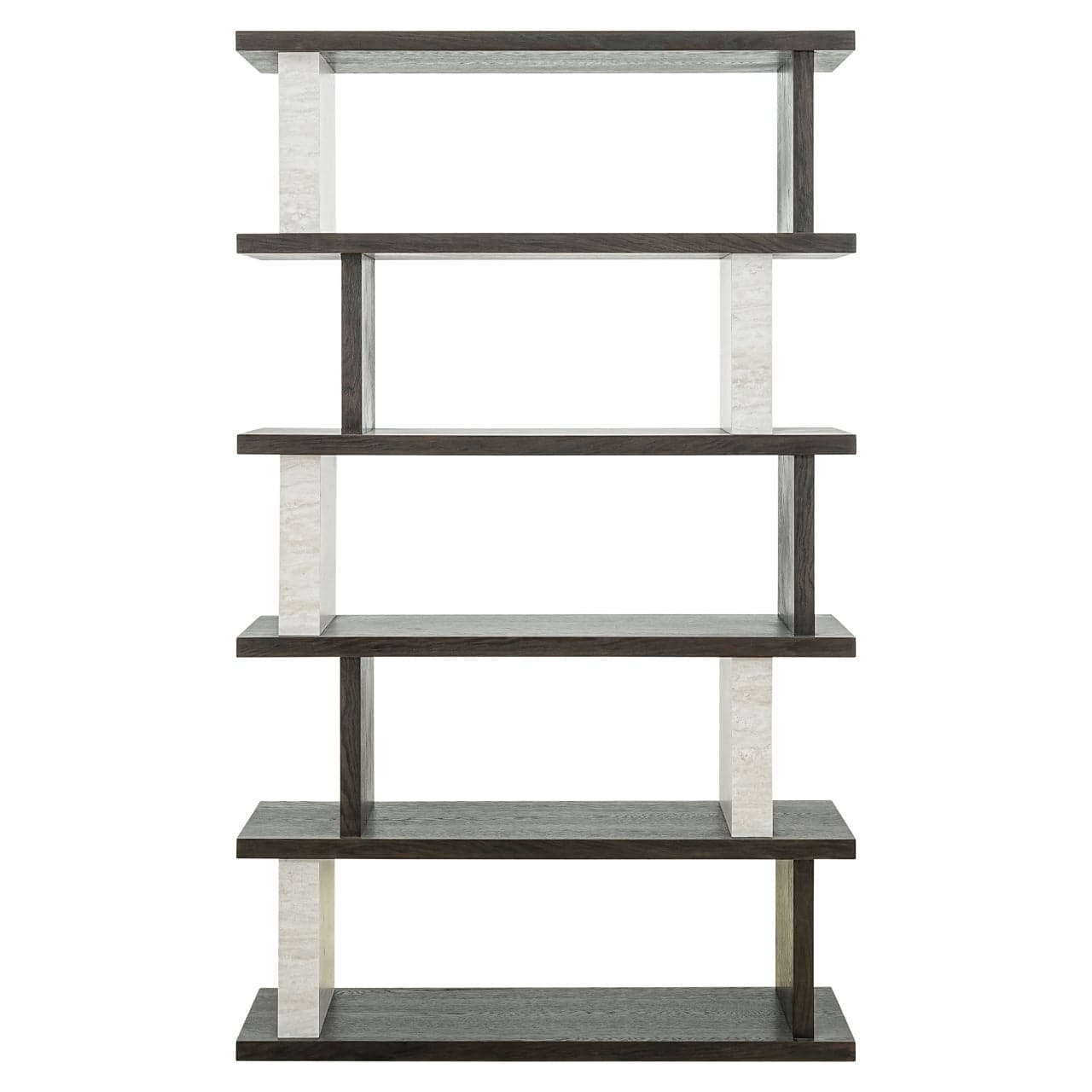 The Waldorf display cabinet combines a mix of wood, stone, oak veneer, and plywood for a robust and stylish look. The cabinet features four spacious shelves that offer ample space for displaying books, decorations, and other items. The combination of wood and stone provides an interesting contrast, while the oak veneer finish adds a warm and natural look. The sturdy construction and modern design make this cabinet a versatile and decorative addition to any interior.