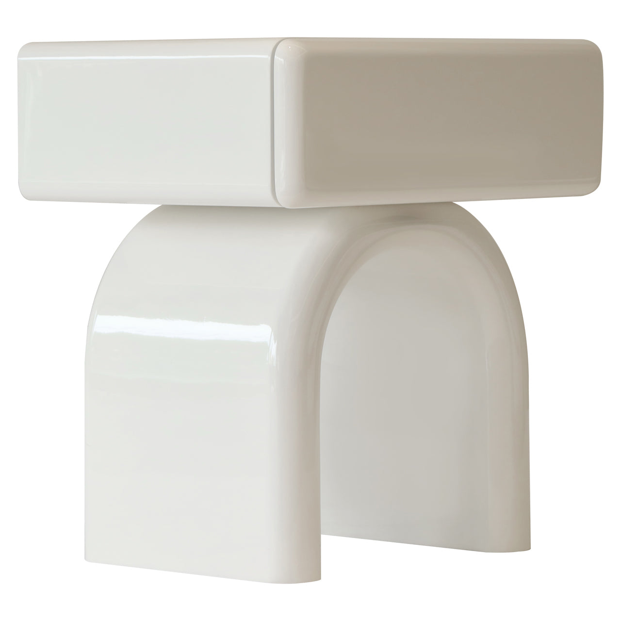 This end table features a compact shape with straight lines and a closed appearance. The design shows a clear volume with an integrated drawer, creating a calm visual impression. The light color contributes to a soft and neutral look in the interior.