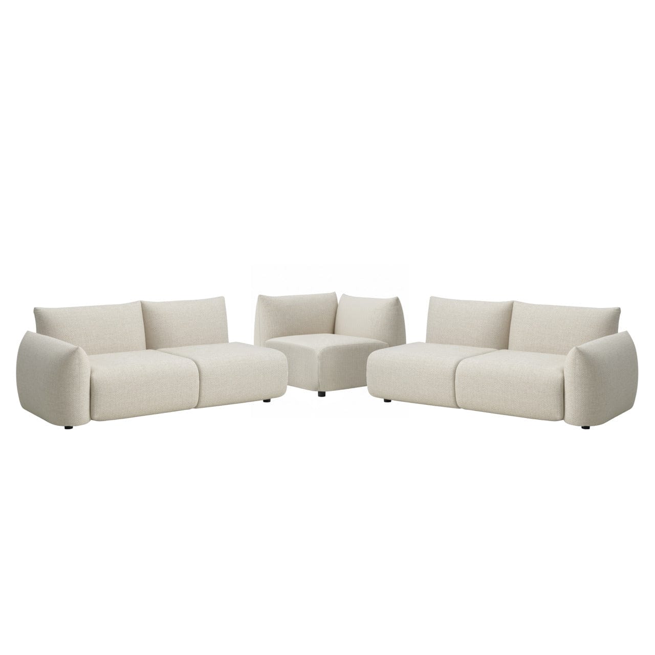 The Dawson corner sofa combines powder-coated aluminium, UV-resistant outdoor fabric and high-density quick-dry cushions, creating a generous and refined hotel-chic outdoor setting. Also available in greige alpine.
