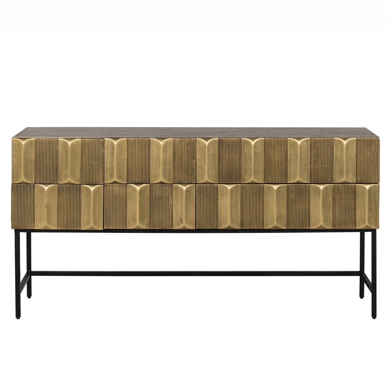 Made of gold-colored MDF, this sideboard stands out because of its unique motif with a depth effect. The MDF adds a touch of luxury to this storage furniture, while the intriguing depth effect motif adds a visually appealing element that draws attention. This sideboard adds style and personality to your interior.