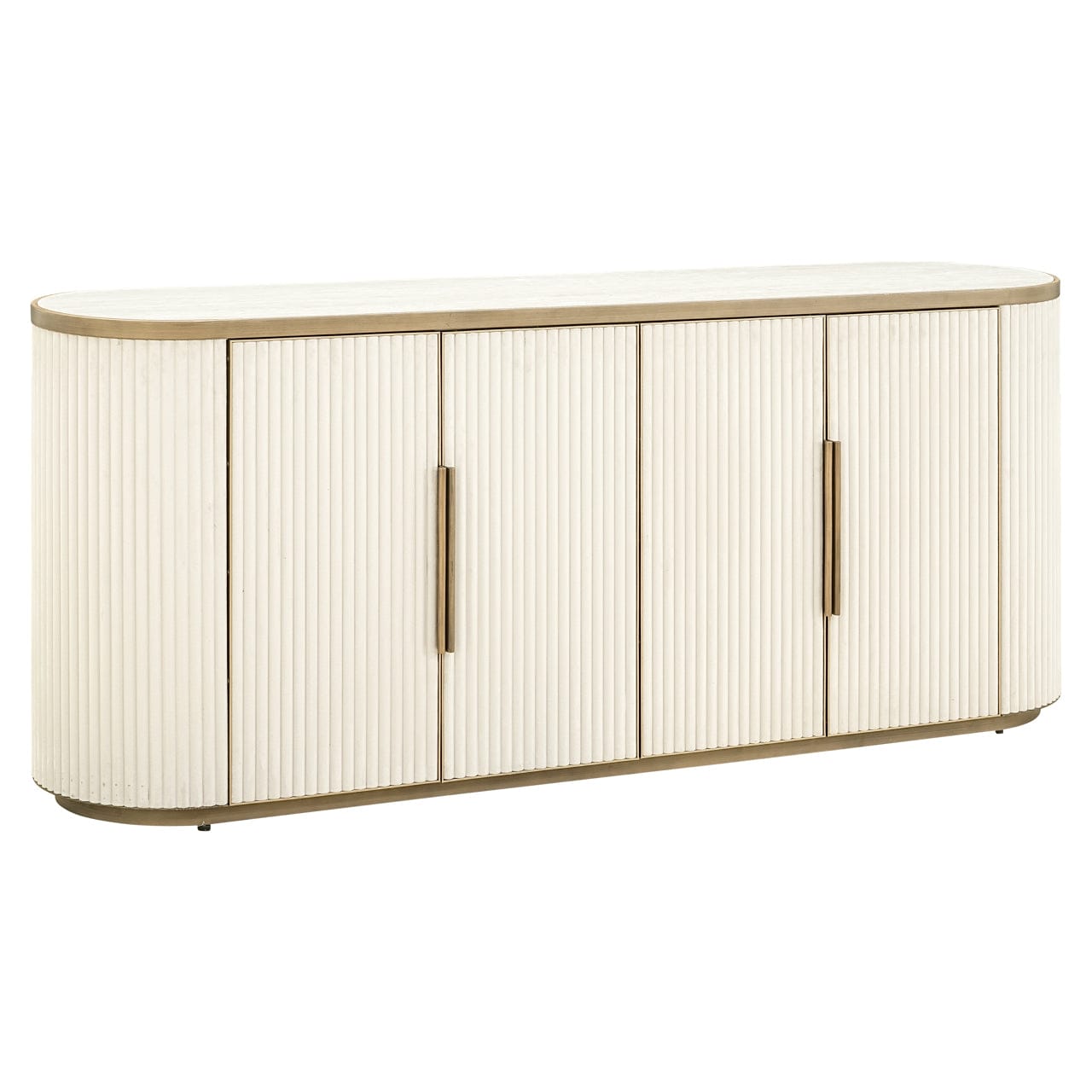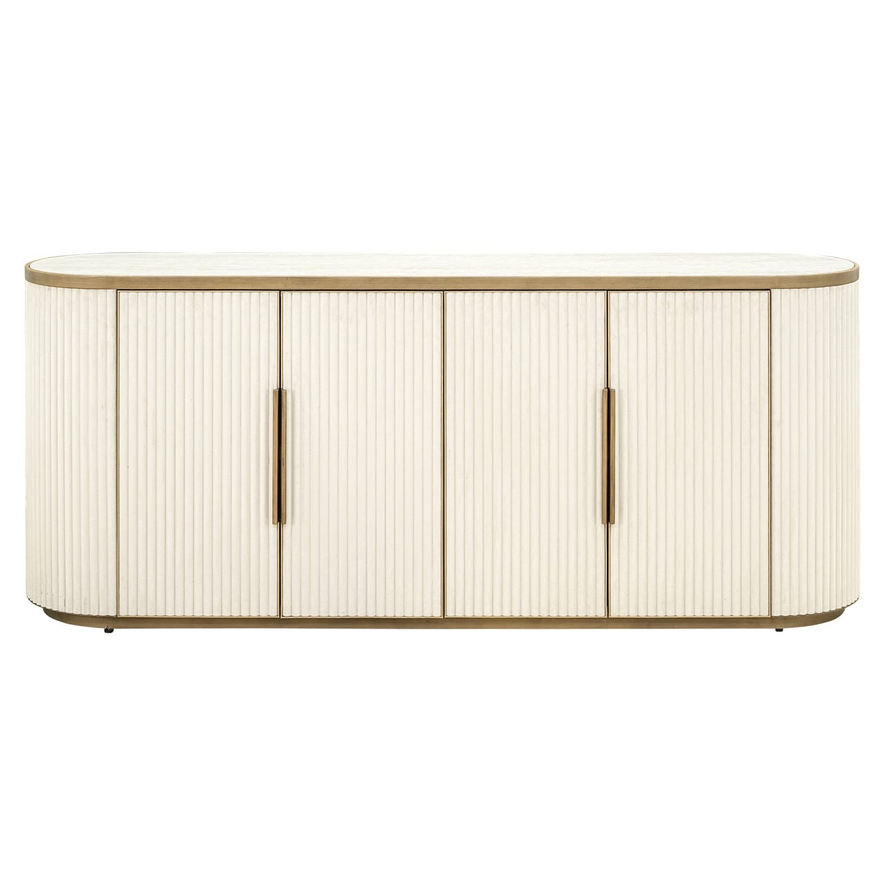 The Tivoli sideboard is an elegant piece of furniture, crafted from a combination of iron and ceramic, giving it a unique and refined appearance. This sideboard features four doors with subtle vertical lines that add a modern texture and aesthetic. The sturdy iron construction ensures durability, while the ceramic finish contributes to its luxurious look. This sideboard is a stylish and functional addition to any interior, ideal for storing various items.