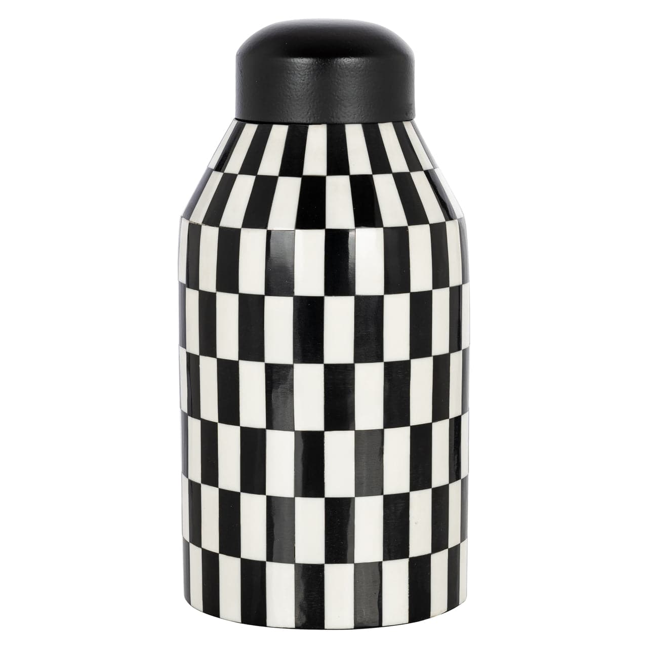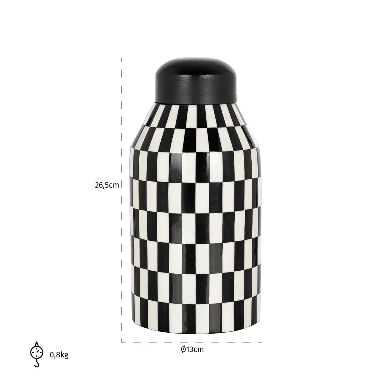 This unique pot immediately stands out with its black and white checkered design. The clean lines and the contrast between black and white provide a modern look, while the checkered pattern adds a touch of retro charm. Crafted with attention to detail, the Malou Pot is not only functional but also a real eye-catcher in any interior. Whether it's used to display a plant or simply as a decorative object in its own right, this pot immediately adds character and style to any space. Available in both small and large sizes, the Malou Pot offers versatility and adaptability to various decor needs. It's the perfect blend of functionality and aesthetics.