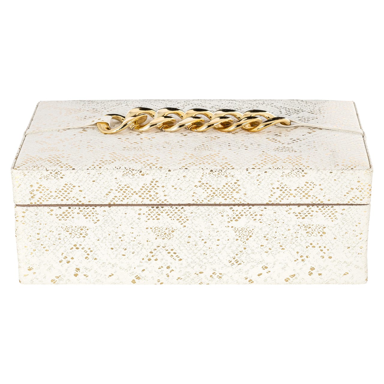If you're looking for a stylish and practical way to safely store your jewelry, then the Jewelry Box Noell is the perfect choice. Made of high-quality MDF and rexine, this jewelry box is durable yet lightweight, making it easy to move around. The gold details on the top add a touch of glamour and elegance to the design, making it an essential item for your interior. Also available in pink.