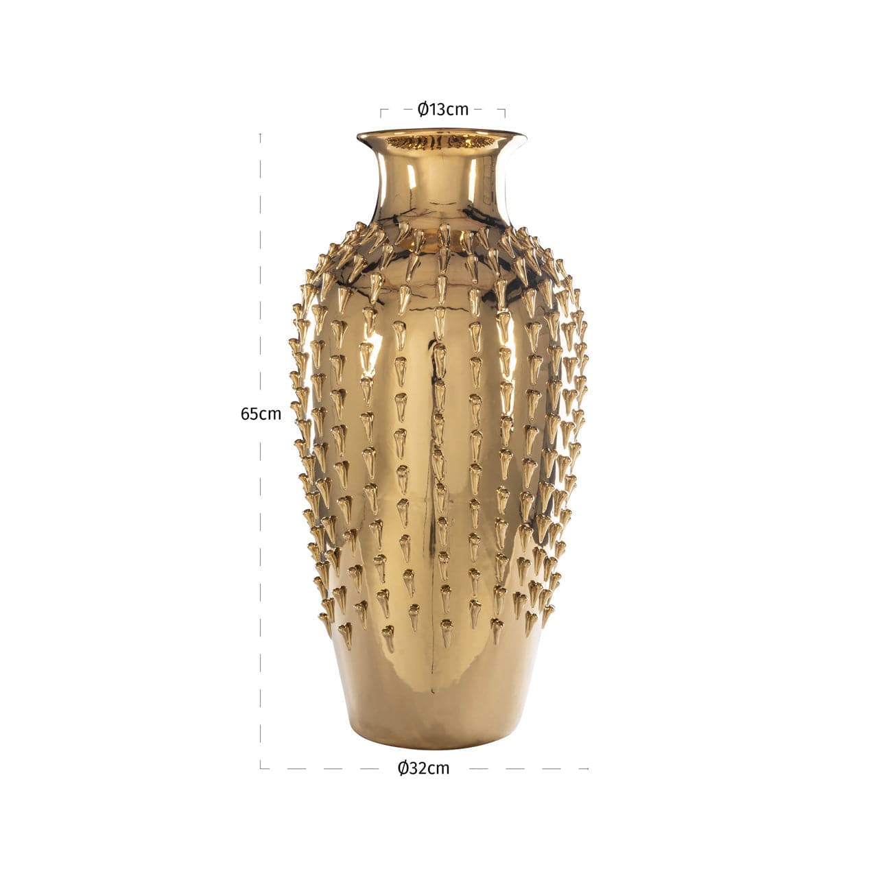 Vase Dania gold has a refined and decorative design with a tall silhouette and soft golden finish. A timeless piece that adds character to both modern and classic interiors.