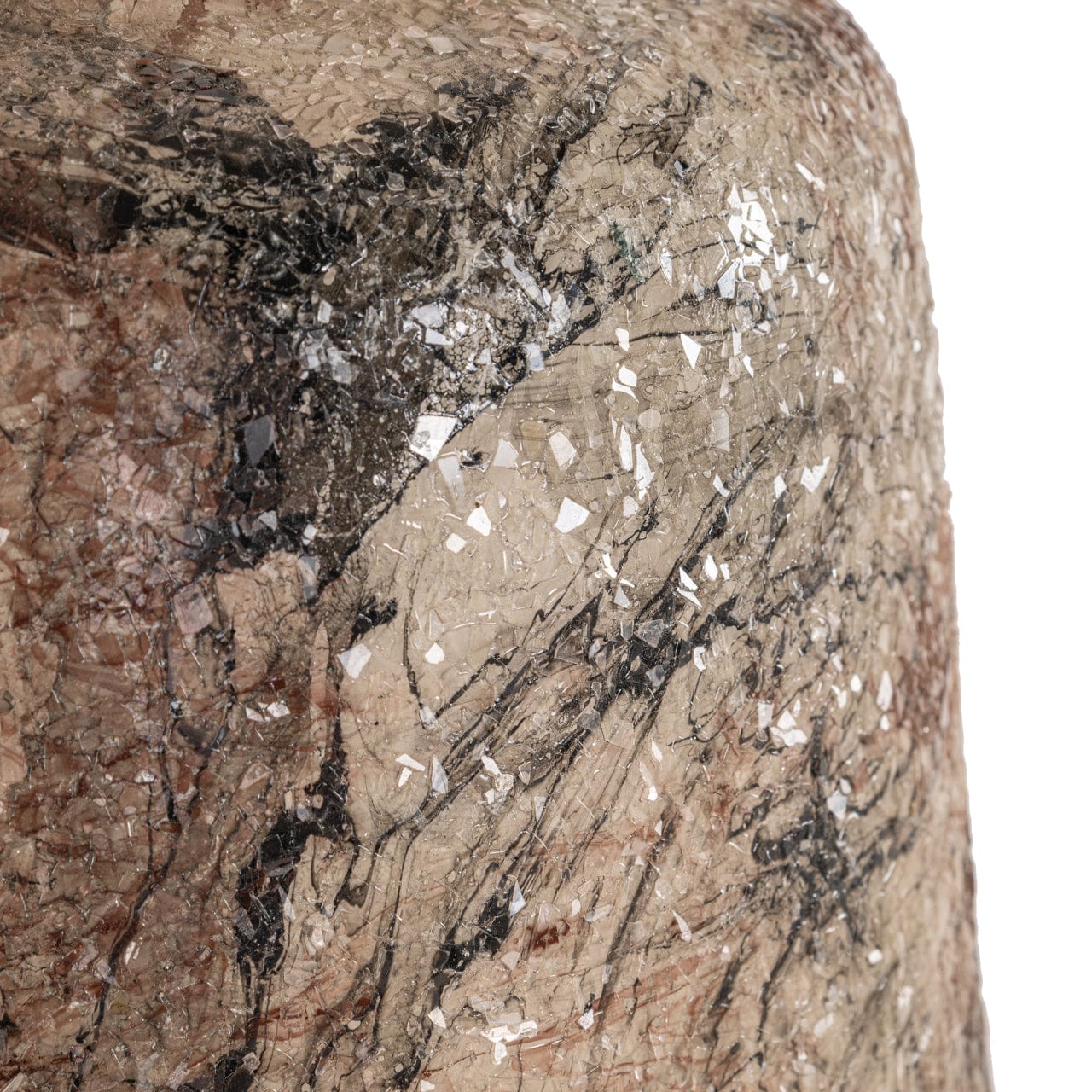 Vase Dena small features a rounded shape and speckled beige surface. A decorative vase with natural tones, perfect on its own or paired with the large version.
