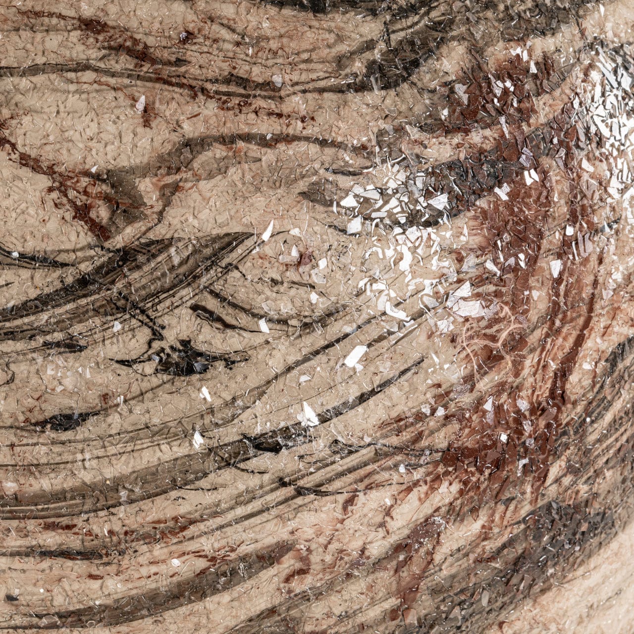 Vase Devana features layered natural tones in a classic rounded form. A calm and earthy accent for a sideboard, table or shelf.