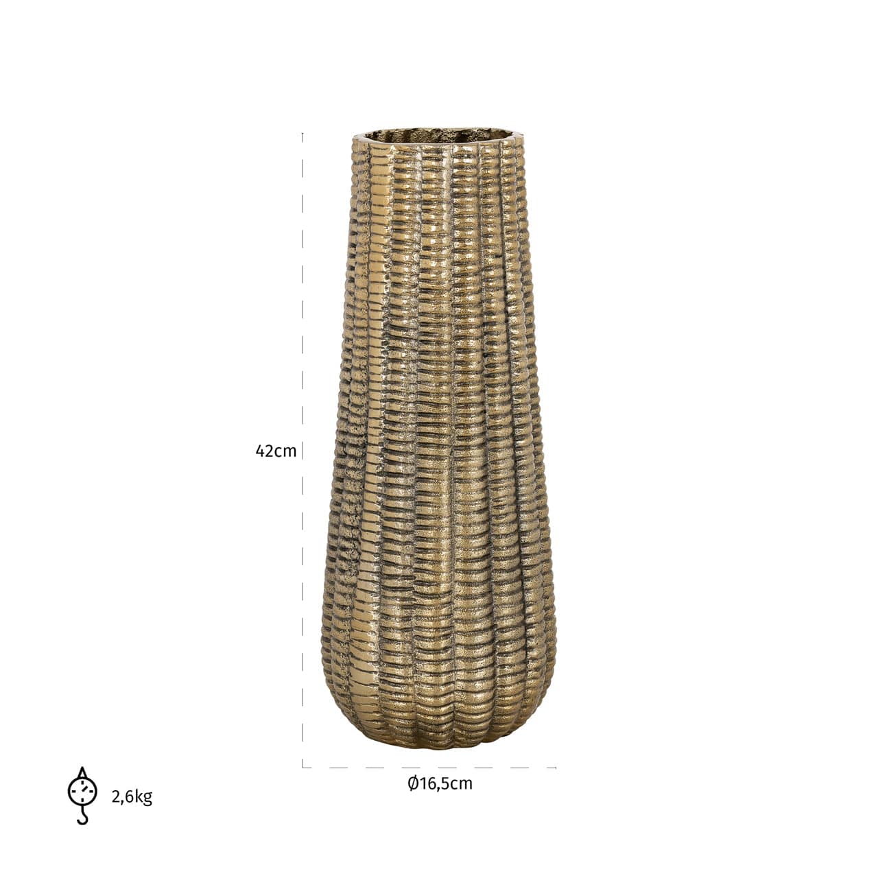 Discover the refined Loran vase, a stunning design crafted from high-quality gold-colored aluminum, adding a touch of luxury and timeless elegance to your interior. This elegant vase is perfect for displaying flowers, branches, or simply as a standalone decorative element. The Loran vase is available in two sizes, allowing you to choose the perfect variant to match your living space. Its streamlined design and refined appearance make it suitable for both modern and classic interiors. Enjoy the refined beauty and charming presence that this vase brings to your interior, regardless of the chosen size.