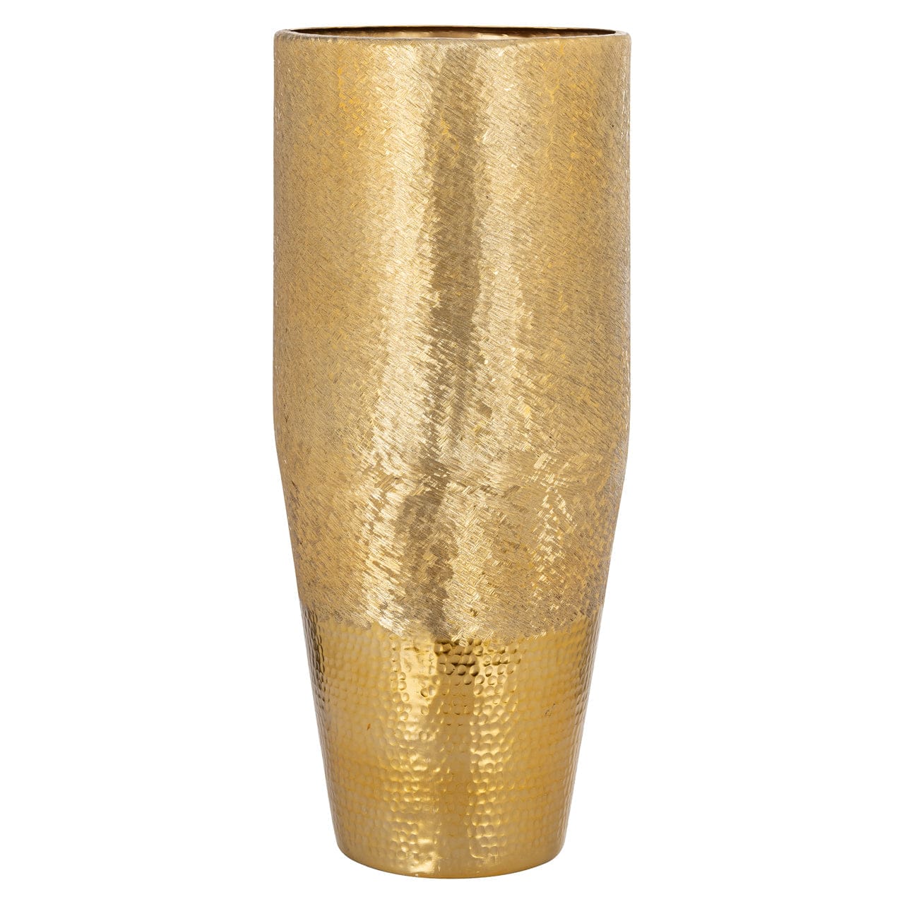 Vase Nalim is crafted from gold-colored aluminum and is characterized by a sleek and timeless design. The shiny finish provides a subtle luxurious appearance. This vase is a functional and stylish addition to any interior.