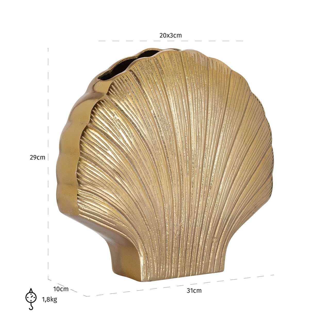 Vase Noé is made of gold-colored aluminum and has the shape of a shell. The simple and recognizable design offers a calm appearance. This vase is available in two sizes: a small and a large one, suitable for various spaces and needs.