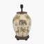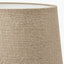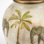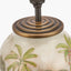 The iconic Jenny Worrall brand boasts a range of truly exquisite table lamp designs. Created using the traditional technique of potichomania, delicate decals are applied by hand within the base of the lamp. Each lamp design is then carefully built up with layers of hand-sponged lustre and colour to create the finished effect. The Safari design is pictured on a champagne gold-coloured background using a green, grey and brown palette for the animals and trees. The gold accenting gives the design depth and is synonymous with the Jenny Worrall brand. The glass is then completed with an antique brass finish base and top. The stunning glass table lamp base is styled with a beautifully rustic, open weave jute linen tapered lamp shade to complete the look.