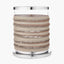 Complete with shiny nickel metalwork and a grey leather woven sleeve, this Clear Glass Small Hurricane with Grey Leather adds a modern touch to any room. Pair with a pillar candle or fairy lights to create a stunning, atmospheric look.