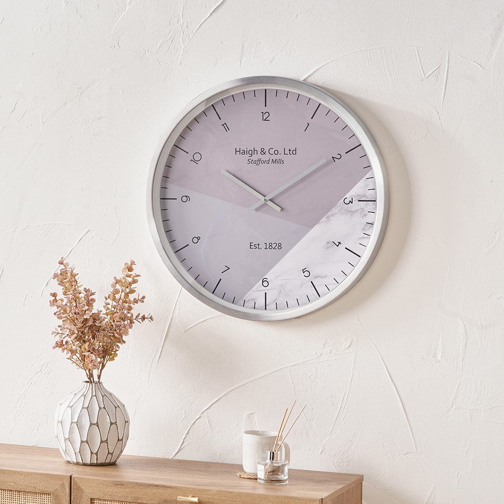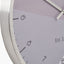 This contemporary round wall clock features a striking three tone clock face with light modern silver frame and black detail. The contrast in colour and minimalist face design make this a bold addition to any room.