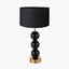 Our Sofia 3-ball table lamp base is perfectly proportioned and most certainly guaranteed to make a statement. The elegant and curvaceous lamp base is finished in shiny black enamel and accented with luxurious gold metal detailing. The beautiful base is completed with a modern black cylinder cotton mix lamp shade which sits beautifully.