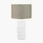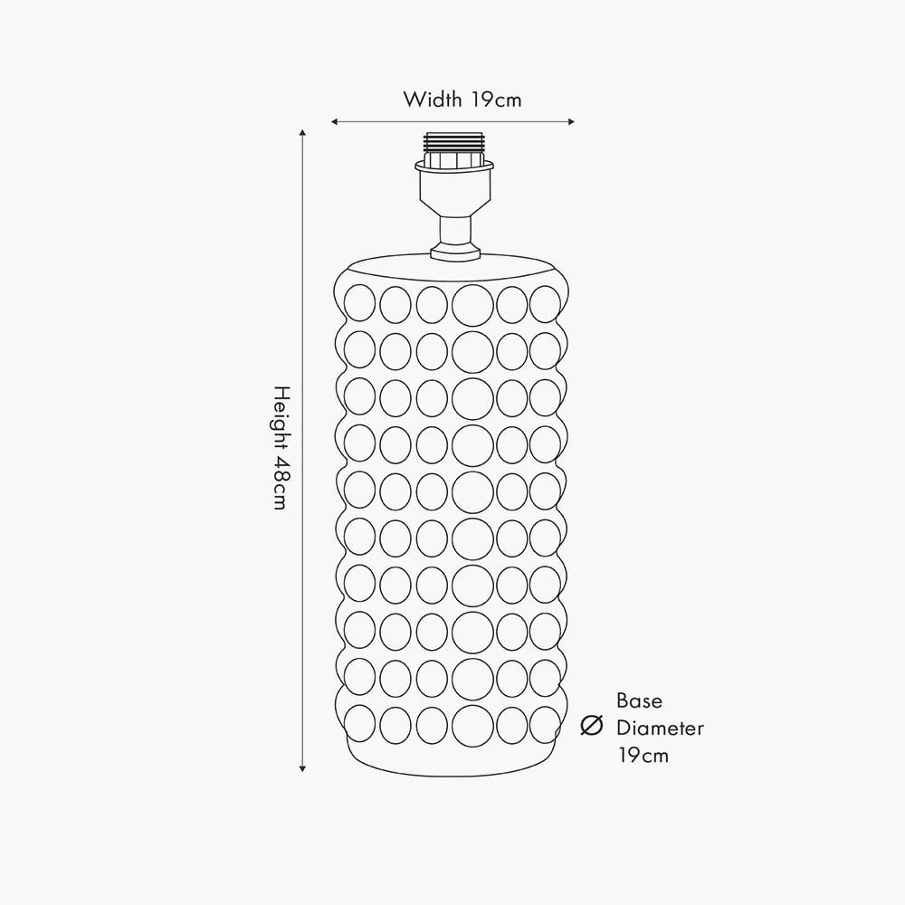 Enhance your living space with this tall, stylish ceramic table lamp base. Its striking clean white finish and unique bobbles make it a standout piece that will elevate any room. Personalise the table lamp base with one of our stunning lampshades to complete the look. Recommended lampshade size 40cms diameter.