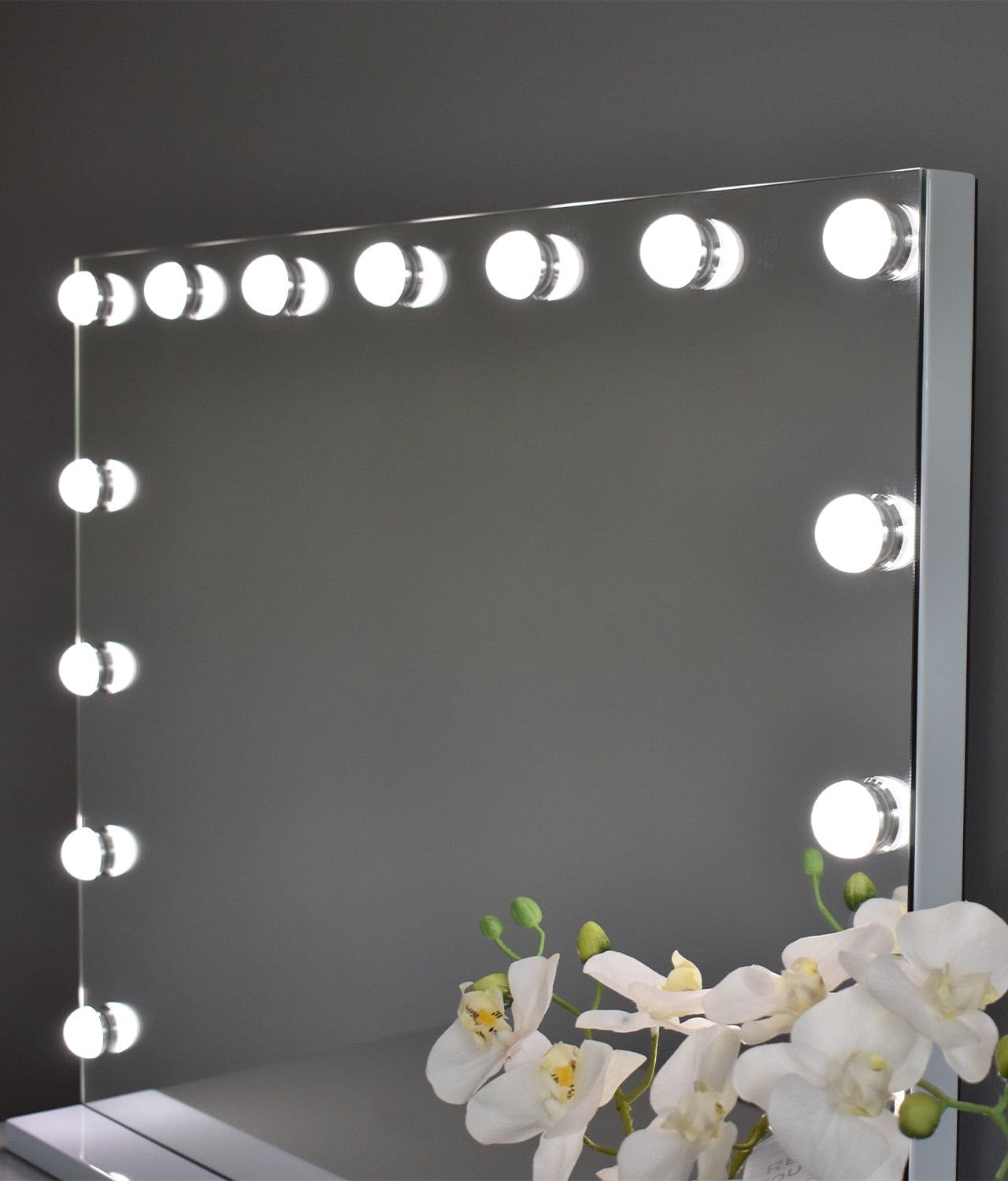 With the ever-increasing popularity of hollywood-style mirrors, we wanted to produce our very own for you to enjoy. The dimmable and colour changing bulbs allow you to have the best lighting when doing your makeup and create a glamorous space in your home.