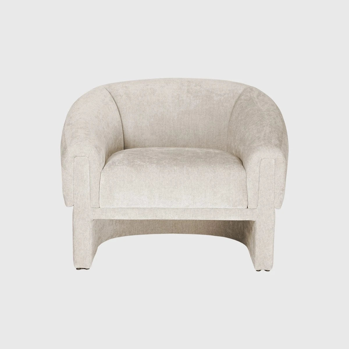 Elevate your living space with the Stratton Armchair, a stunning blend of contemporary design and luxurious comfort. This sophisticated barrel-back armchair is upholstered in a soft, neutral-toned fabric, offering a timeless aesthetic that seamlessly complements a wide range of interior styles—from modern and minimalist to transitional and mid-century-inspired spaces.