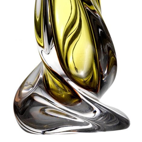 The attractive Carnegie Table Lamp will lend a fabulous splash of colour to your home décor. The solid hand-blown glass lamp base mixes green hues and clear glass to create a lively effect. Its elegant shape and fascinating texture is amplified by a round olive green lampshade.