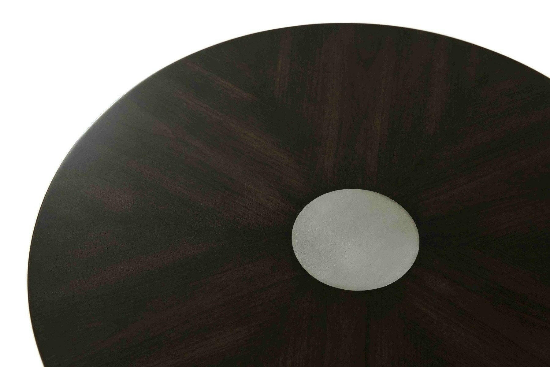Ossian Finish Wood Reference a classically beautiful shape in a modern living room with the distinctive plinth of the TA Studio Accent Table Vernon. This pedestal side table has been given a contemporary update with its central metal disk and leather base, which helps the traditional contours blend effortlessly with a modern scheme. In terms of everyday functionality, the large surface provides a sizable space that is suitable for drinks and accessories. Eclipse Leather Base When this modern side table is not in use, the surface requires minimal decoration to look distinctive – with the striking wood and contrasting metal disk in the centre of table bringing a sense of character. For a rich depth, the starburst cherry veneer wood top is finished in a dark Ossian tone and contrasted with leather base in a grey Eclipse colour. TA STUDIO NO.3 Crafted with the hallmark artisan quality of Theodore Alexander, TA Studio No. 3 is an elegant realisation of contemporary form and function. All the pieces are designed to seamlessly work together, unified by clean lines and harmonious finishes, with an inherent sense of poise and graceful ease. The TA Studio brand encompasses a simplistic, modern style suited to a variety of settings, from luxurious townhouses and city apartments to contemporary country interiors.