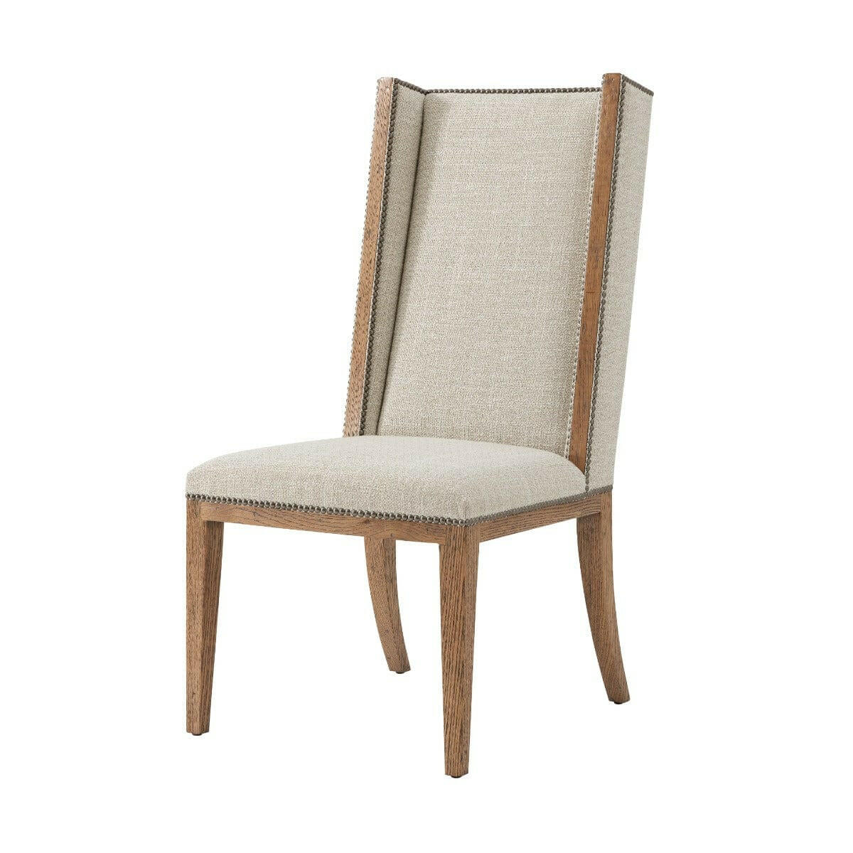 The Aston Dining Chair in Vegas Natural is a stunning addition to any dining room. With its solid high back and angular short wing back, this chair exudes elegance and sophistication. The neutral Vegas upholstery adds a touch of versatility, making it easy to match with any decor. The chair is supported by Echo Oak legs and features studded edging detail for a touch of glamour.