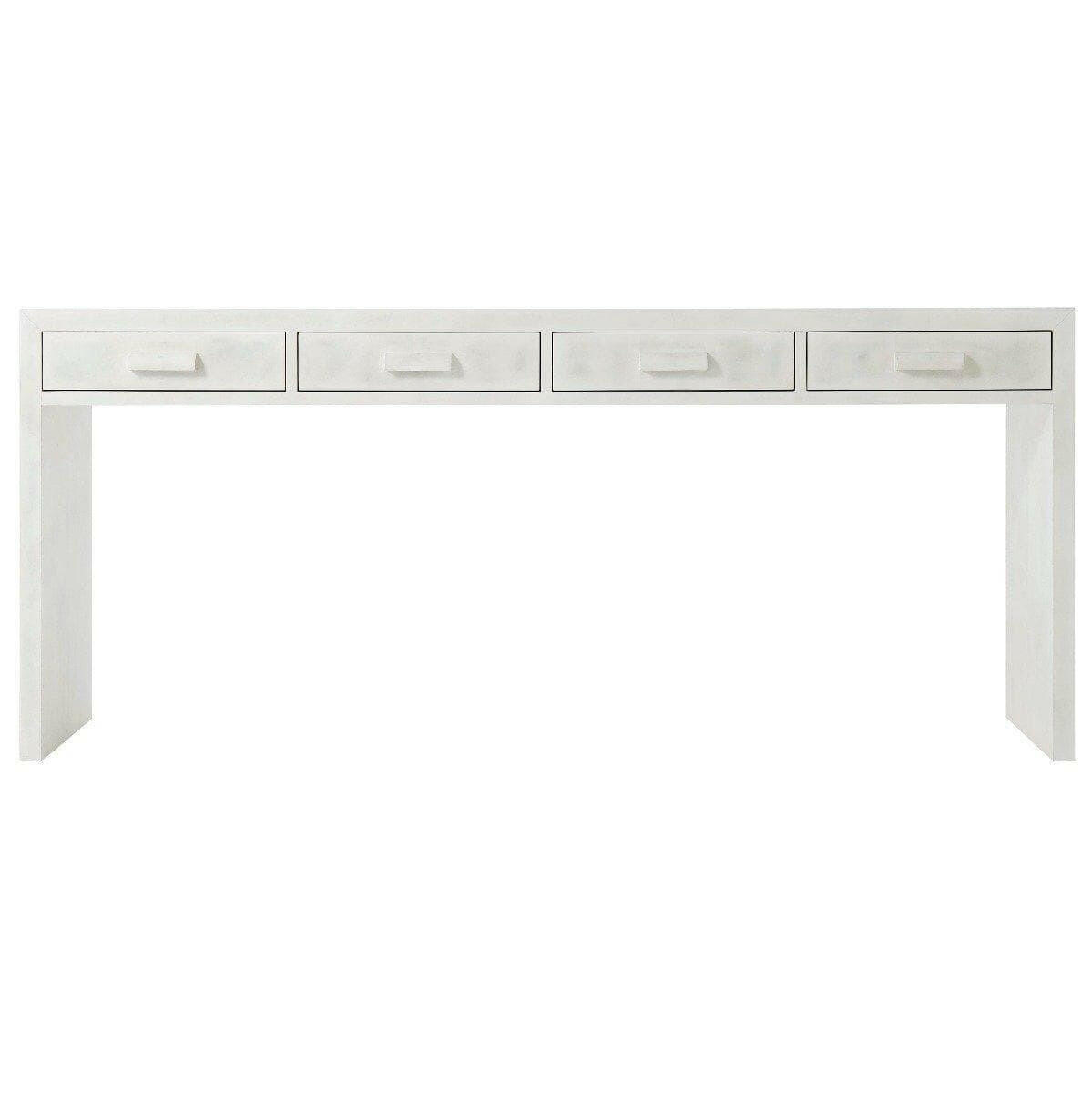 Introducing the Console Table Irwindale, a stunning addition to any home. This versatile piece can be used as a console or desk, making it perfect for any room. The hand painted faux parchment adds a touch of elegance and sophistication to the design.