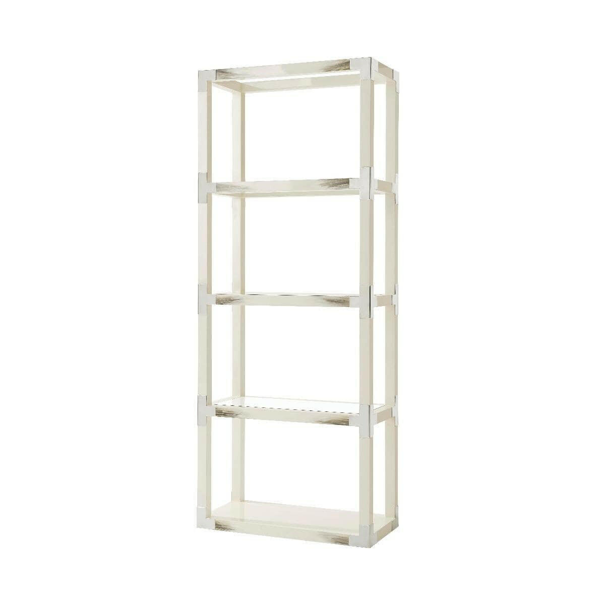 The Cutting Edge Shelving Unit in White is a stunning addition to any home. Its hand painted faux horn wooden frame adds a touch of elegance and sophistication, while the stainless steel edged corners provide a modern and sleek look. The tempered glass inset shelves not only add to the overall aesthetic, but also make this shelving unit durable and practical.