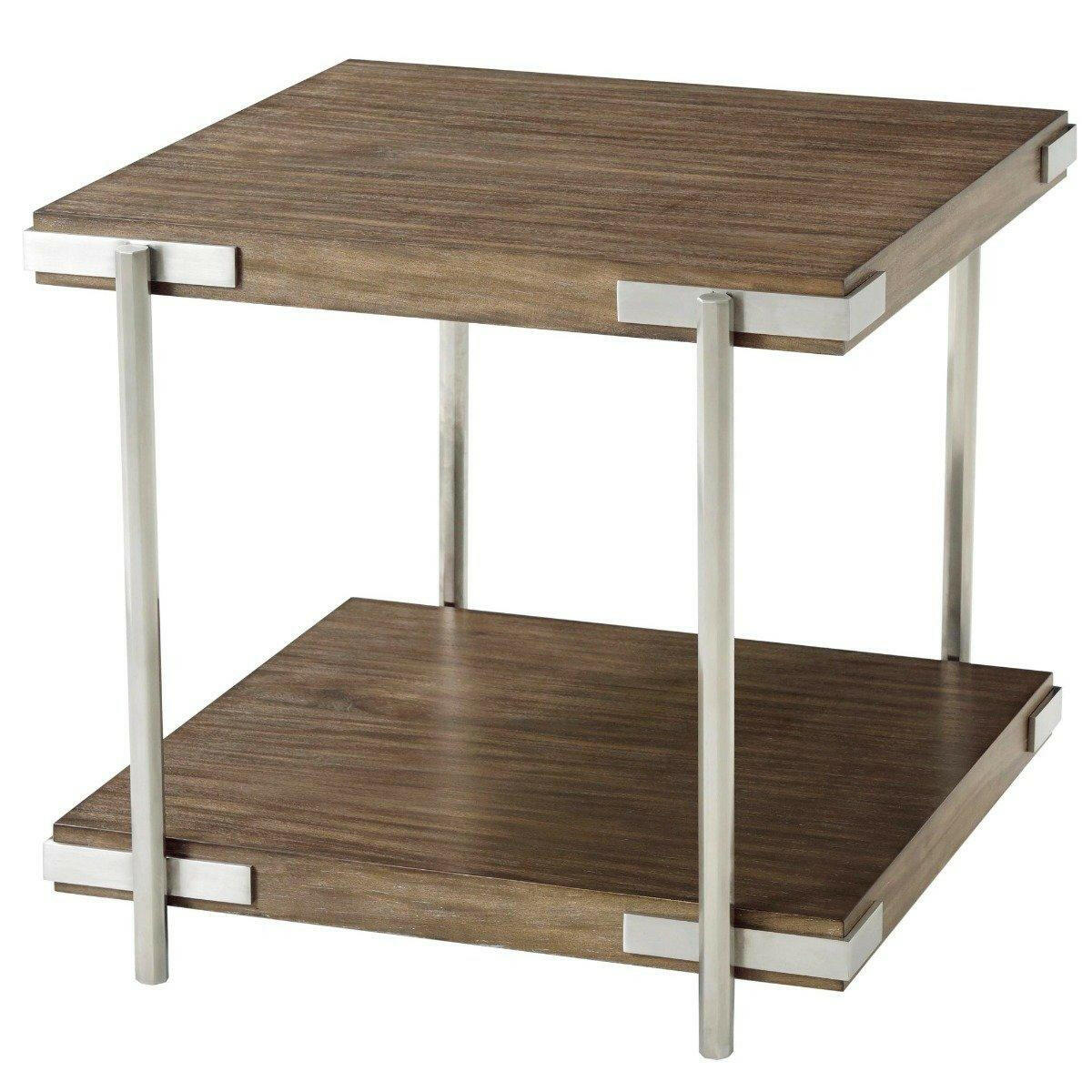 Introducing the TA Studio Side Table Zara in Mangrove – a stunning addition to any well-designed living room. This modern side table features glimmering metallic supports and corners, adding a touch of sophistication to your space. With two spacious shelves, it's not only beautiful but also functional – perfect for displaying a table light, books, and curios. The symmetrical top and bottom veneer surfaces are hand-selected in complementary figuring and finished in a warm Mangrove tone, creating a pleasing visual rhythm. The brushed nickel corners and hexagonal supports add a modern touch to the design.