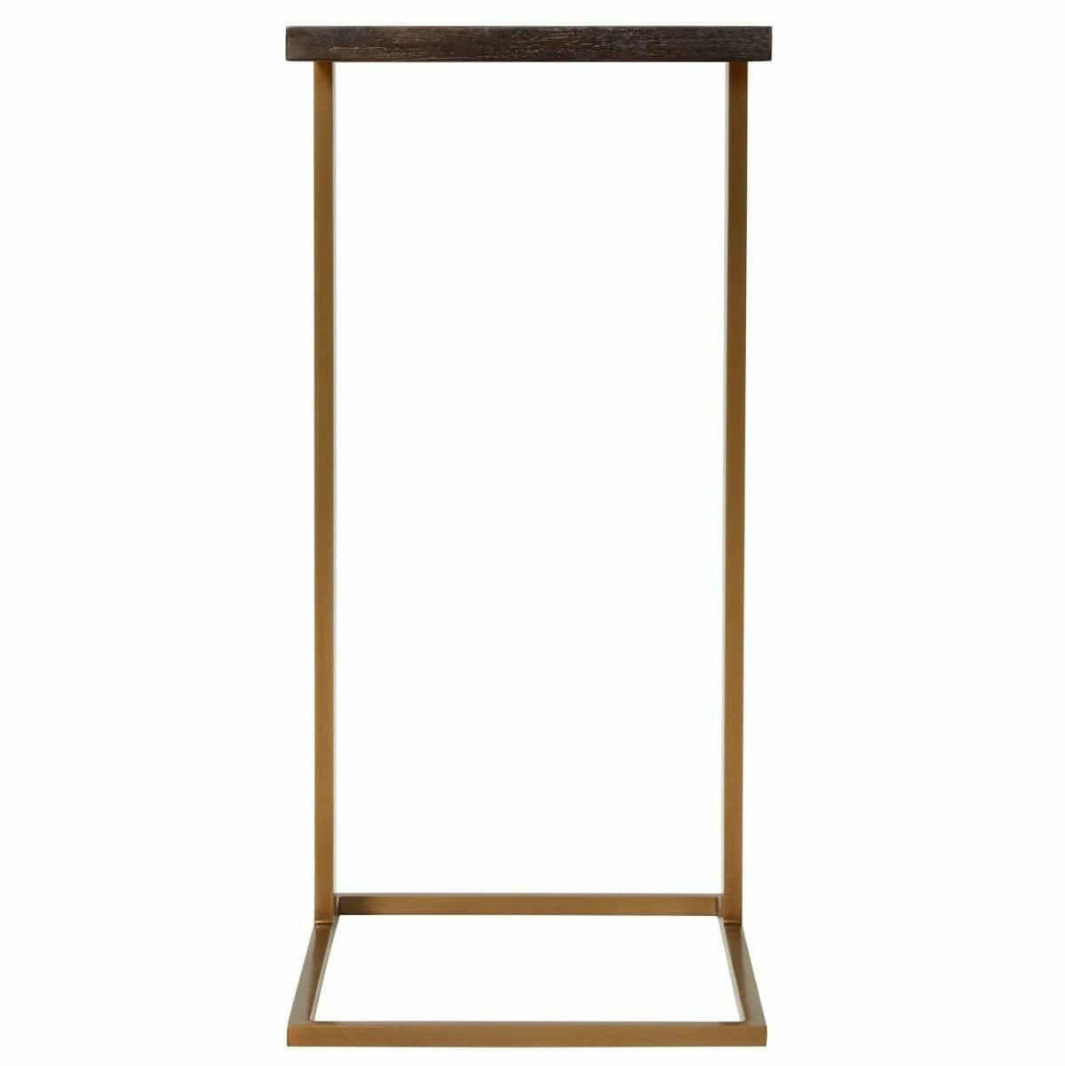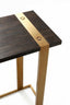 Introducing the TA Studio Supper Table Bishop in Rowan, a sleek and charming accent table that is both useful and stylish. Its neat profile allows for easy placement between furnishings and in narrow spaces. The primavera veneer top is hand-selected and finished in a dark Rowan tone, giving it a lightly rustic look. The stainless steel base, finished in brushed brass, adds a touch of luxury with its slot screw accents. This table is part of the TA Studio No. 2 collection, known for its contemporary form and function. Designed to seamlessly work together, this table is perfect for a variety of settings, from townhouses to country interiors.