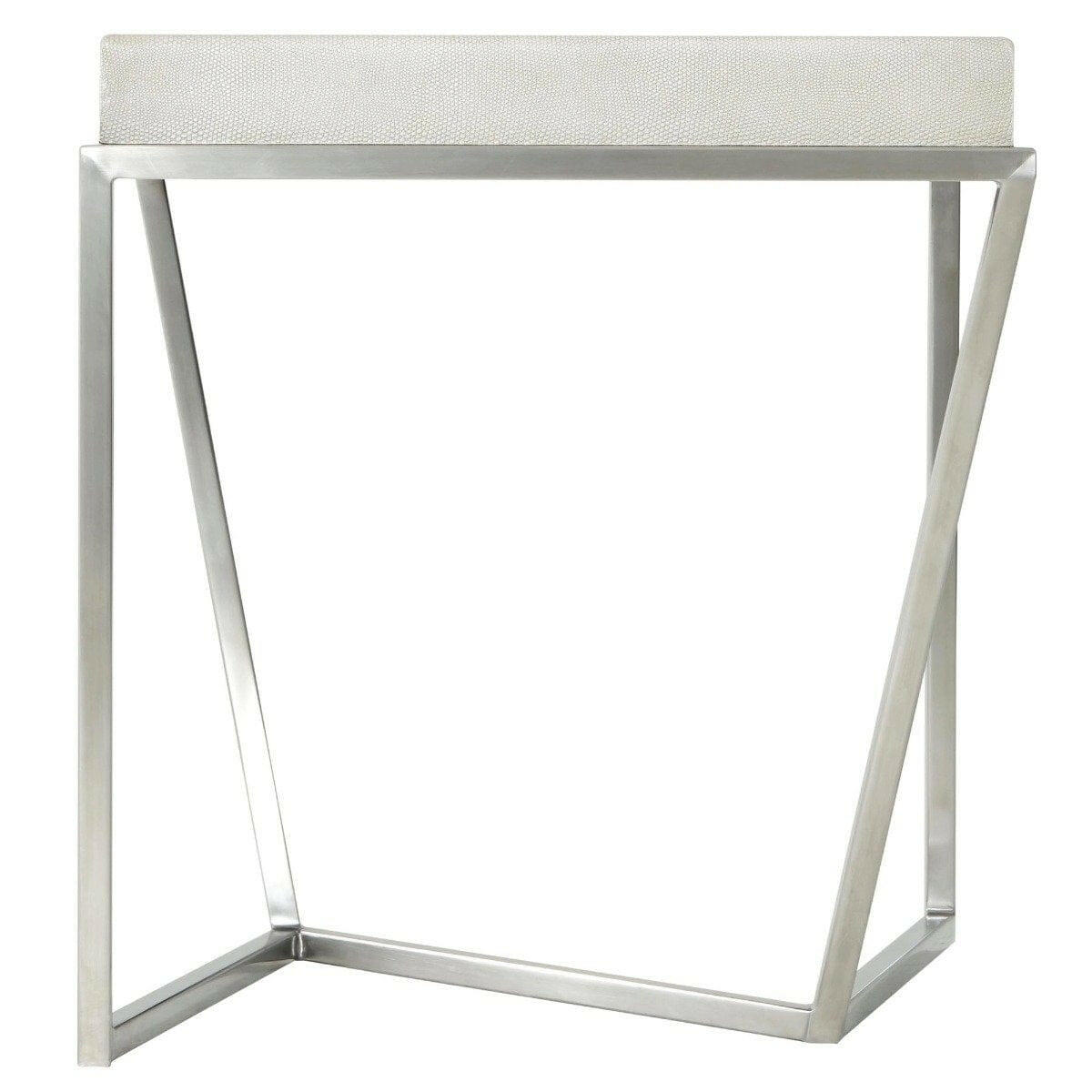 Treat your living space to a touch of luxury with the TA Studio Tray Table Crazy X in Overcast. This stunning side table features a leather surface that mimics the texture of exotic animal skin, adding a lavish visual element to any room. The smooth metallic legs, crafted using traditional techniques and finished in brushed nickel, provide a beautiful contrast to the leather top. Measuring 55.8x55.8x60.2, this versatile piece can be used as a sofa side table, bedside table, or occasional table. Part of the TA Studio No. 2 collection, this side table embodies contemporary form and function with its clean lines and harmonious finishes. Shop now at House of Isabella for luxurious furniture and enjoy free UK delivery.