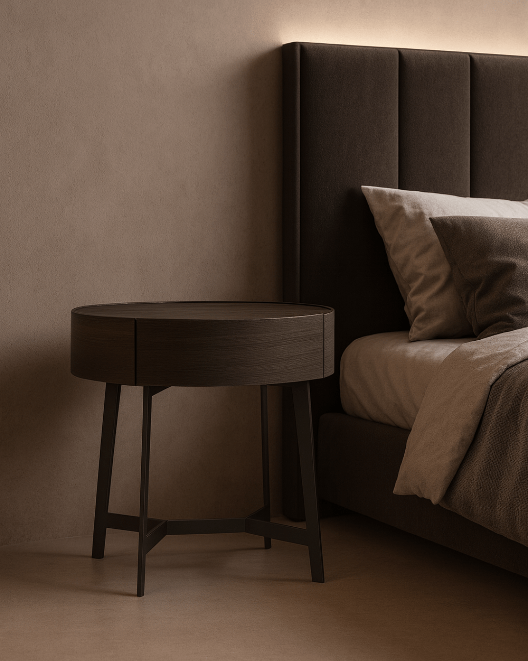 The Tom Night Stand is a contemporary and functional bedside companion that adds a touch of sophistication to any bedroom. Its grey wash oak veneer finish lends a rich and elegant appearance, while the black powder-coated legs complement the overall aesthetic with a modern edge. The nightstand's unique leg design not only enhances its visual appeal but also ensures stability and durability. The rounded top adds a soft and inviting element to the design, making it an excellent choice for a cozy and welcoming bedroom ambiance. Additionally, the nightstand features a convenient drawer, providing ample storage space for keeping essentials and personal items close at hand. With its seamless blend of style and practicality, the Tom Night Stand is the perfect addition to elevate both the look and functionality of your bedroom.