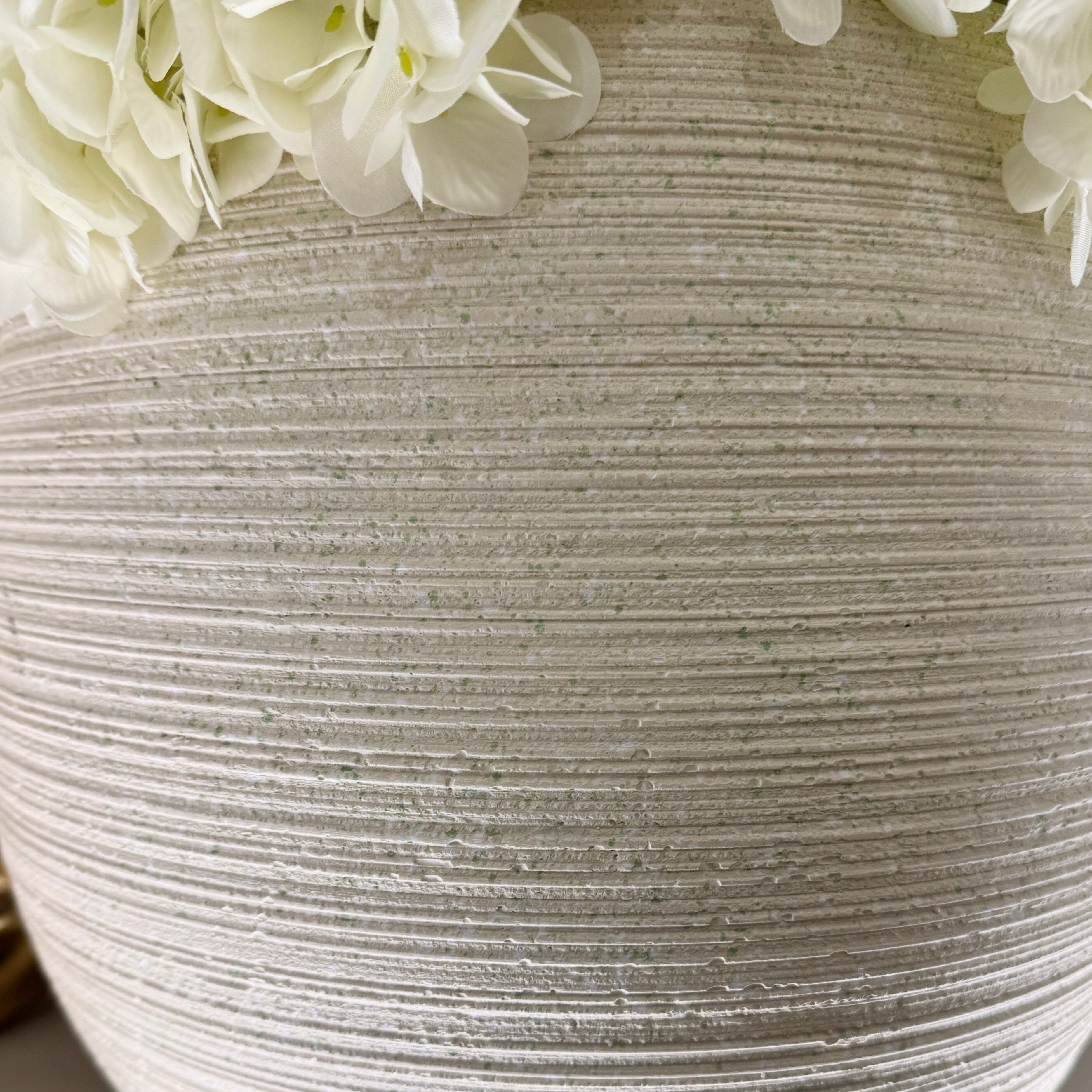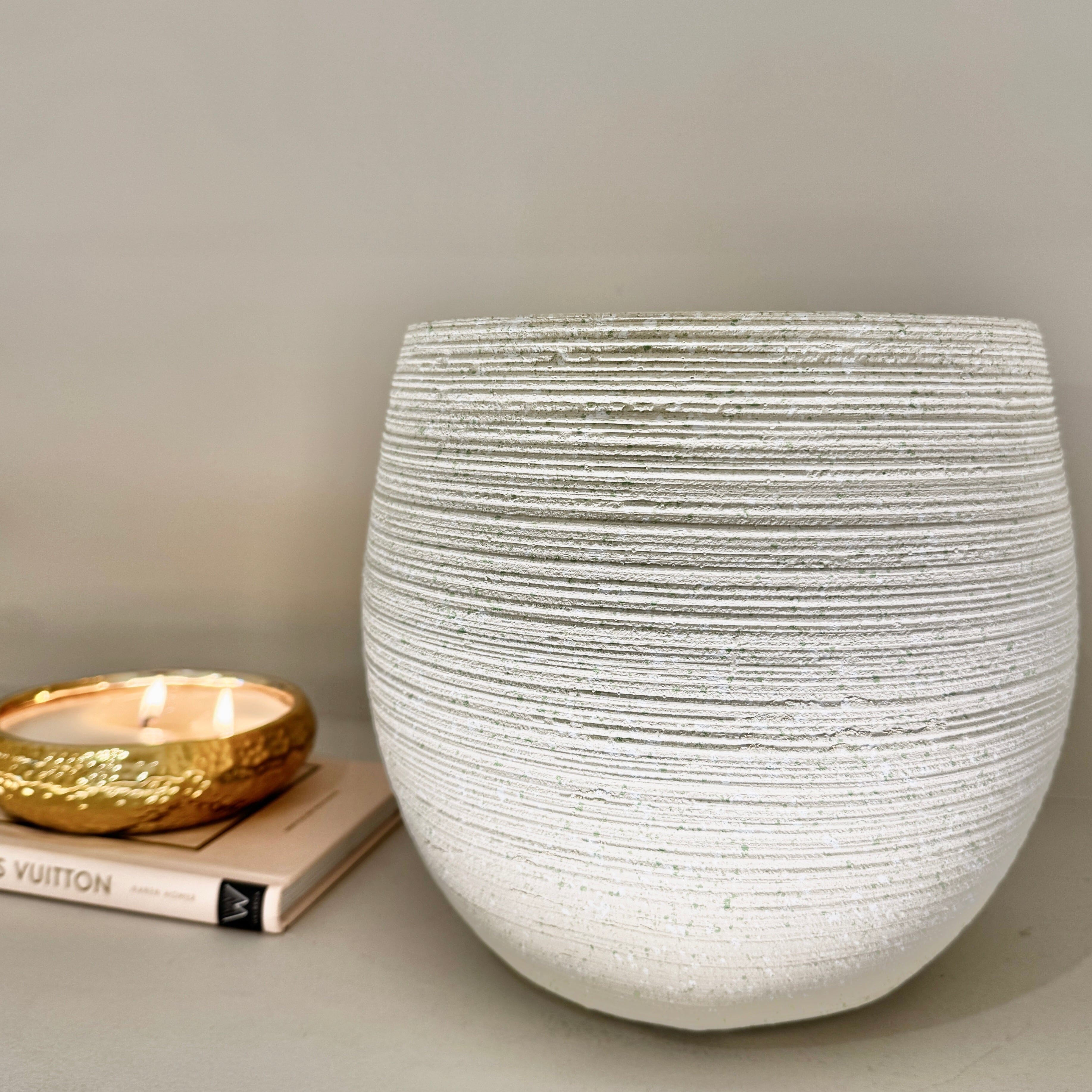 The Tranquillity Neutral Round Textured Planter is a stylish way to showcase your plants.