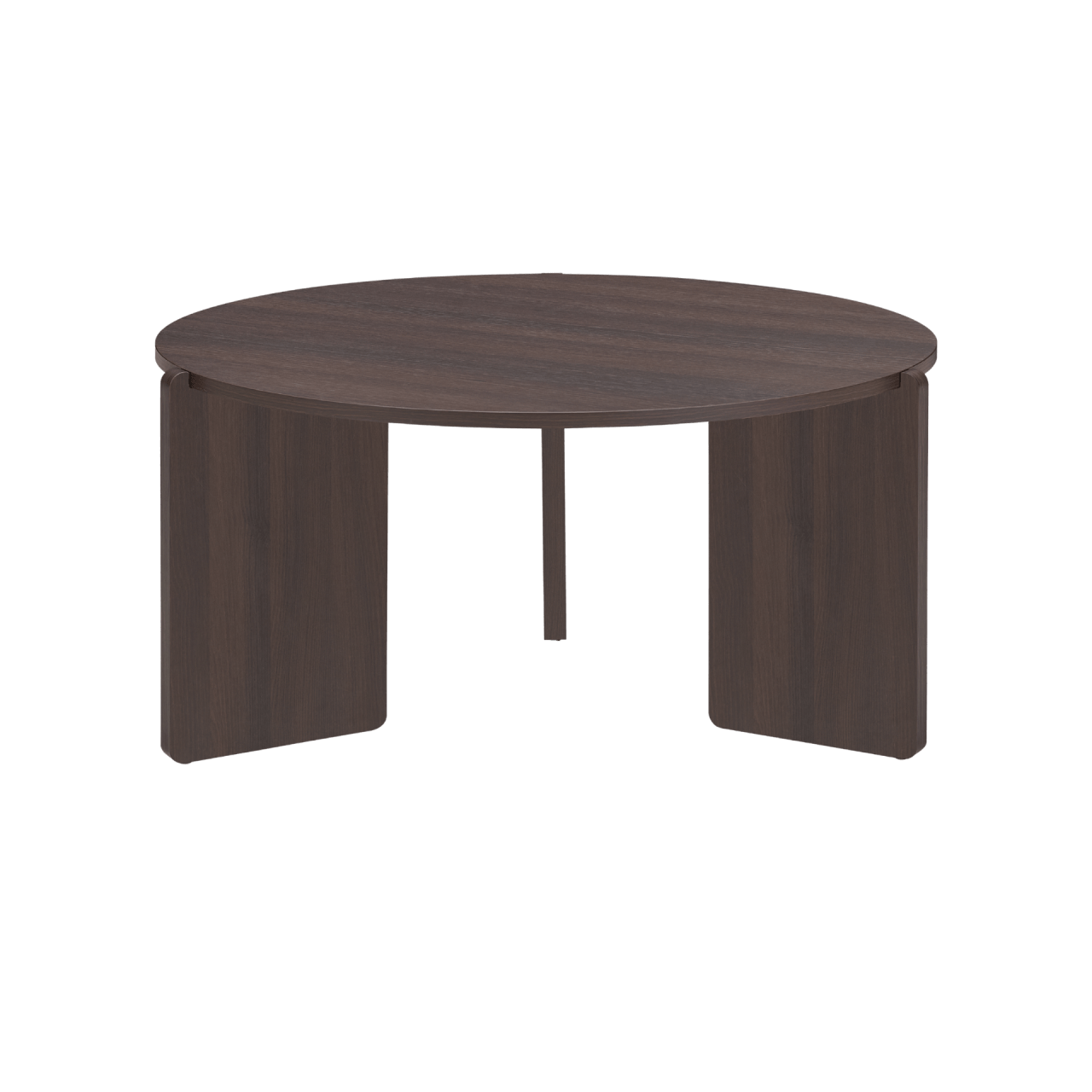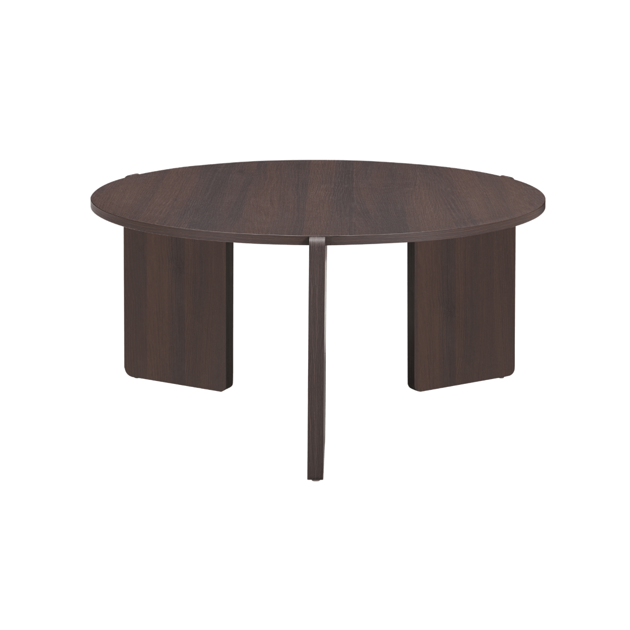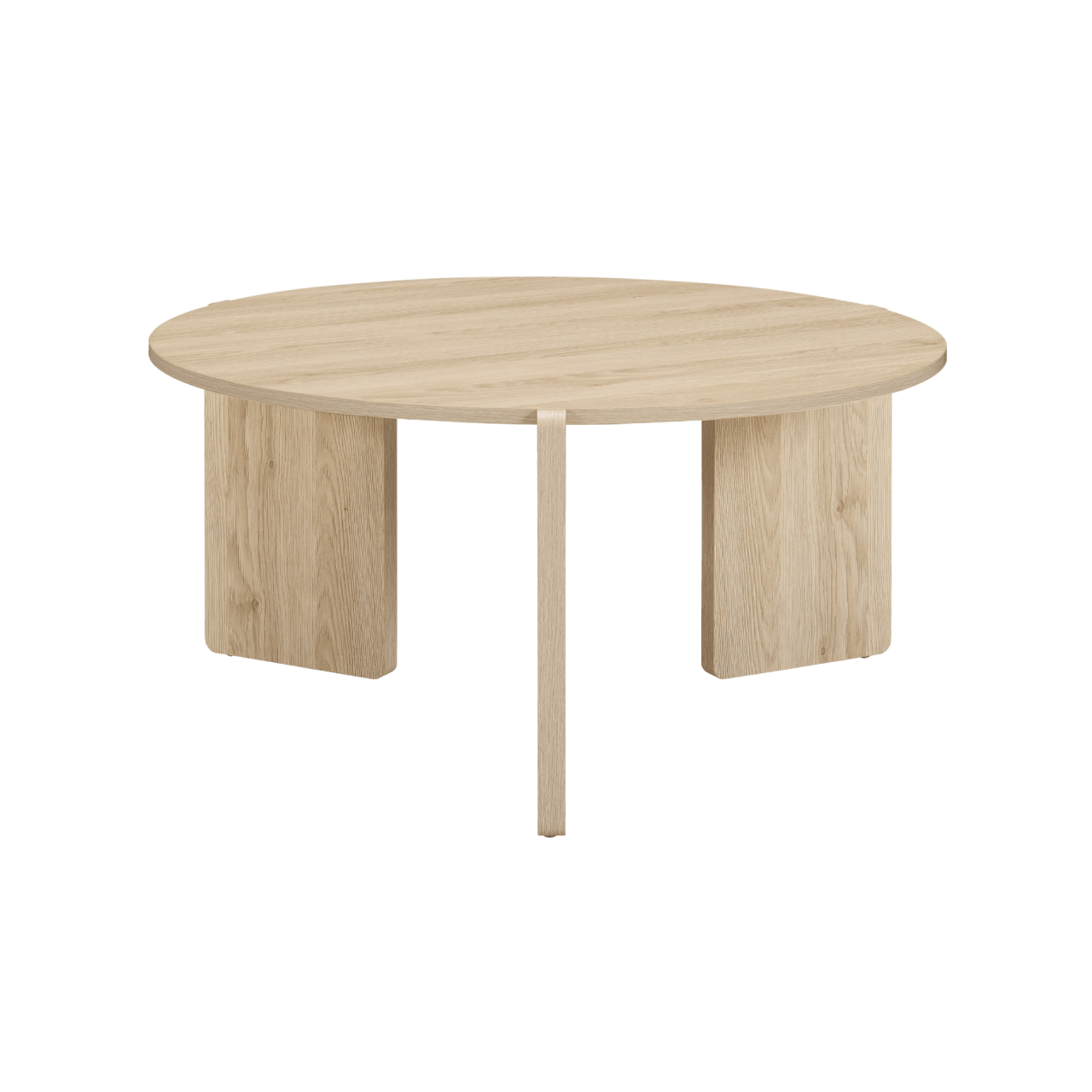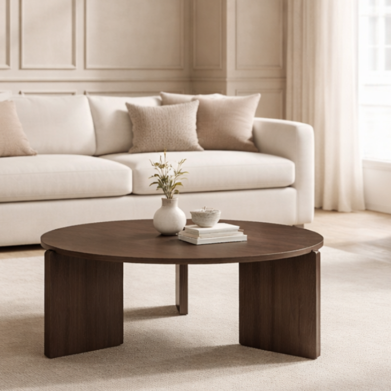 The Halo Coffee Table stands out with its contemporary round design and a wide selection of finishes. Its three legs, rounded at the corners, extend beyond the tabletop, overlapping to create a dynamic visual effect. The smooth finish on the edges and woodgrain-effect sides makes this table an ideal fit for modern urban spaces. Thoughtfully constructed with sustainable materials, it supports eco-conscious living while enhancing your space.
