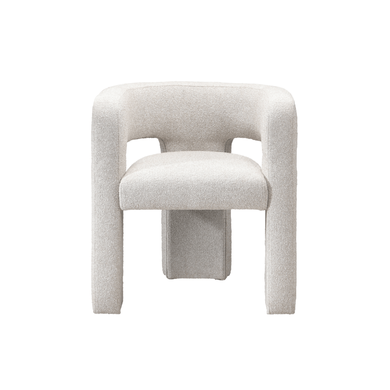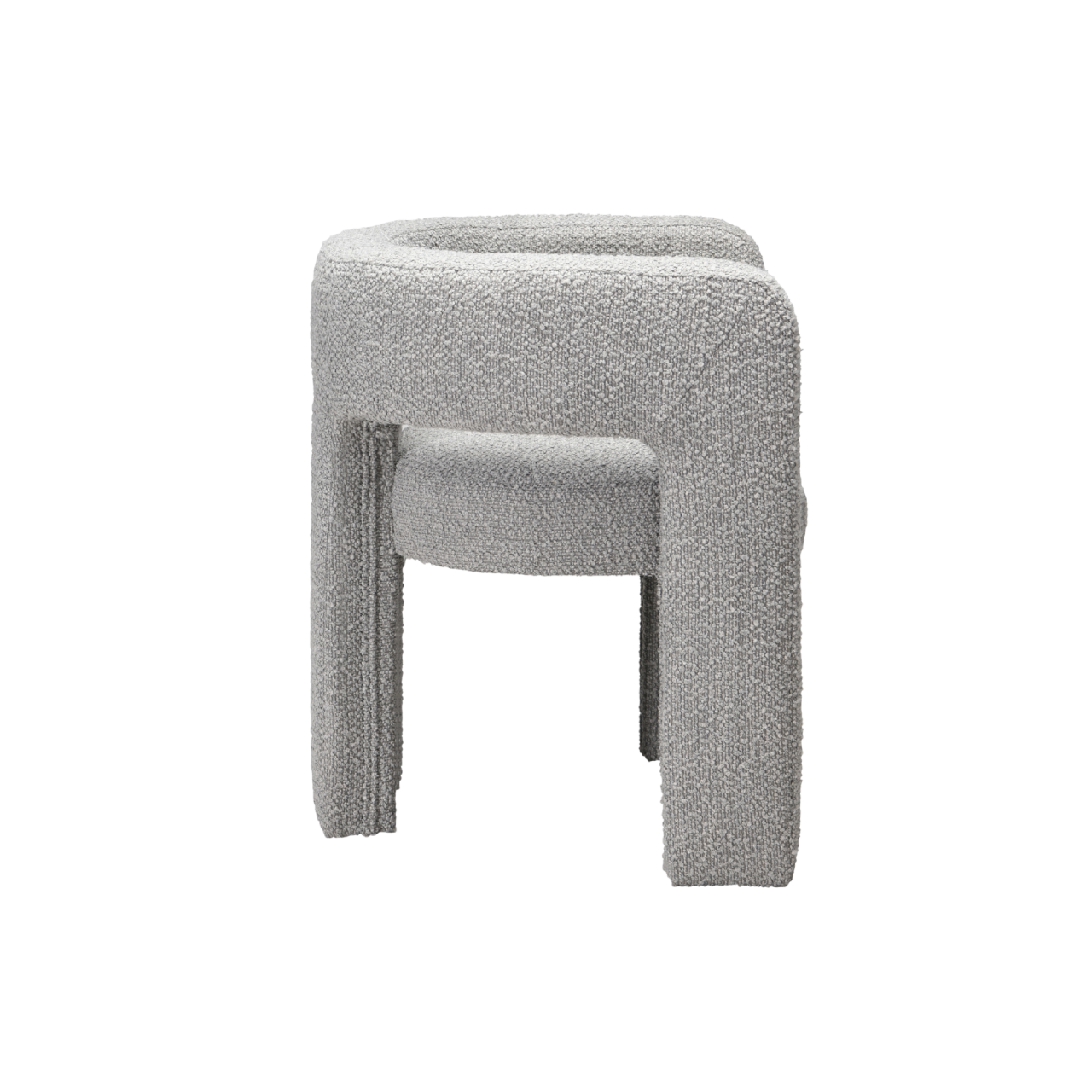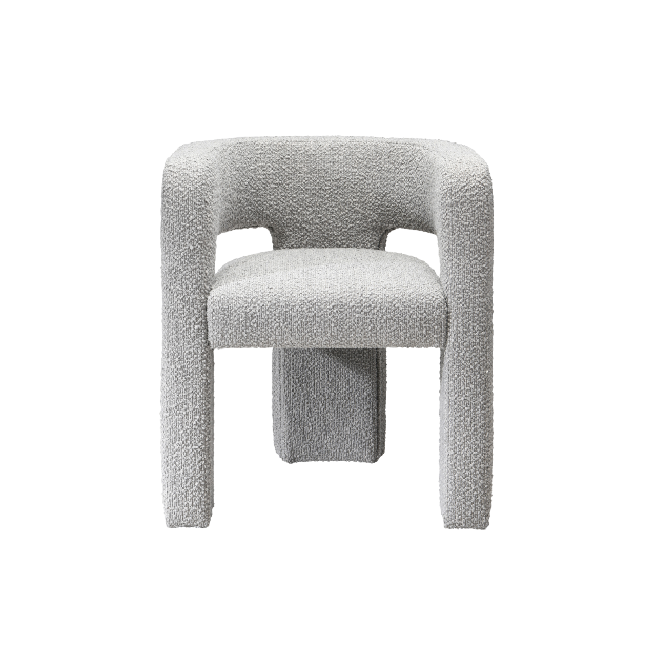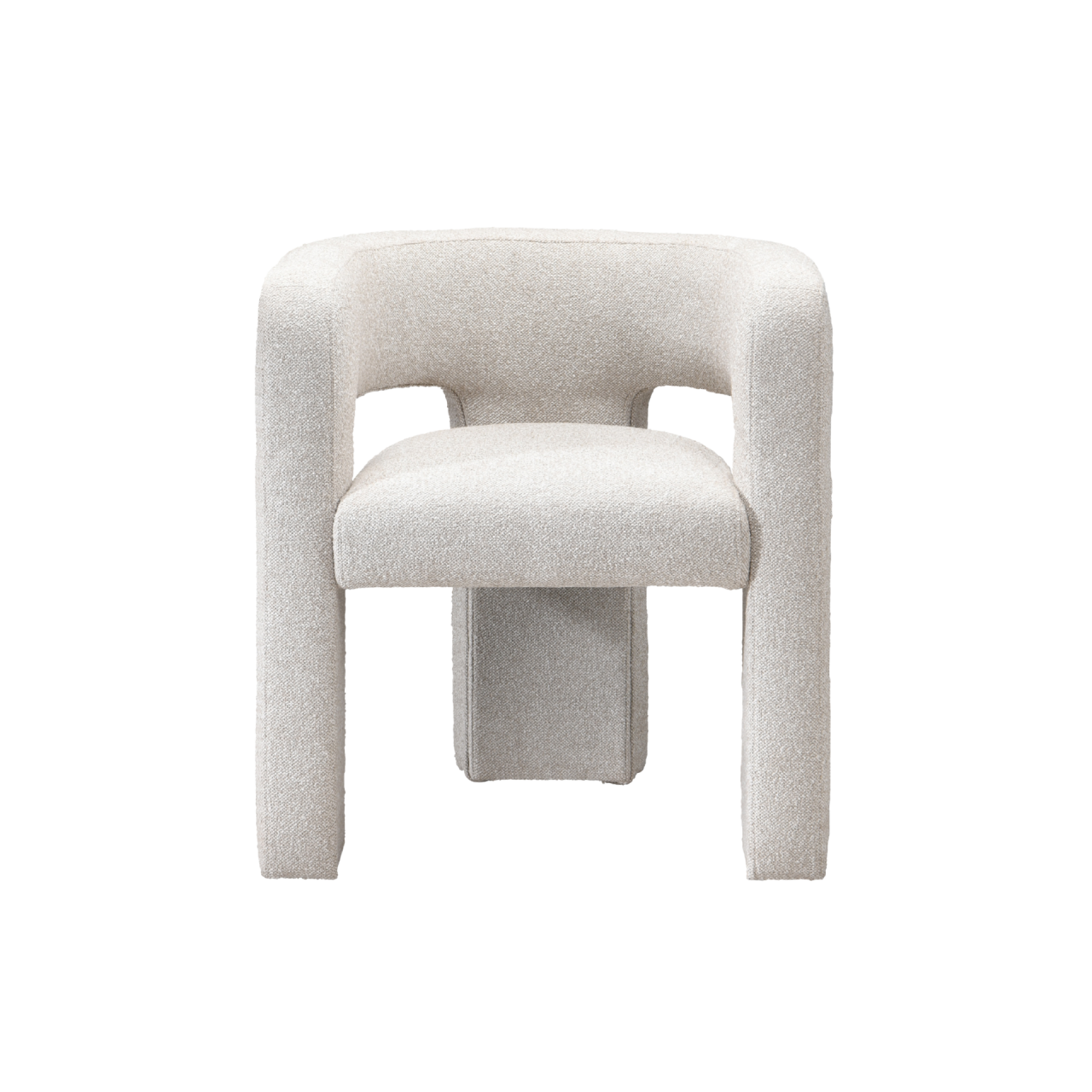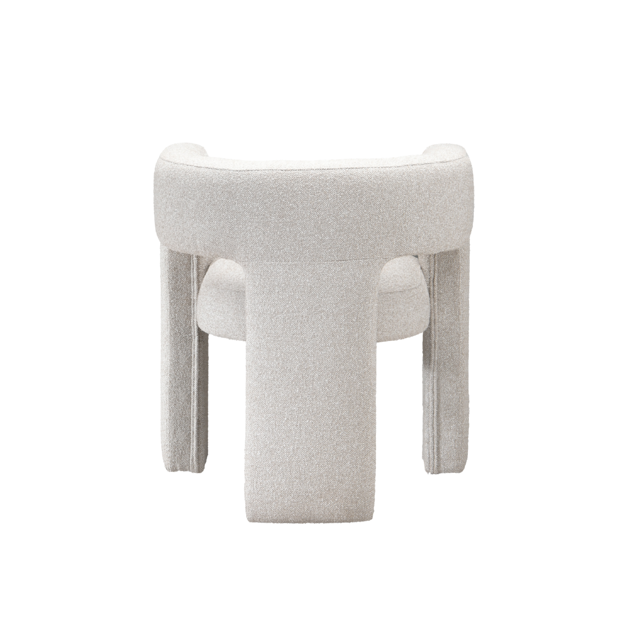 The Crescent Occasional Chair features an elegant half-moon design. Its three-legged frame seamlessly curves into the armrests and backrest, forming a seamless structure with a sophisticated style. A padded seat enhances comfort for a snug seating experience. Built with sustainably sourced and environmentally conscious materials, it is both stylish and responsible.