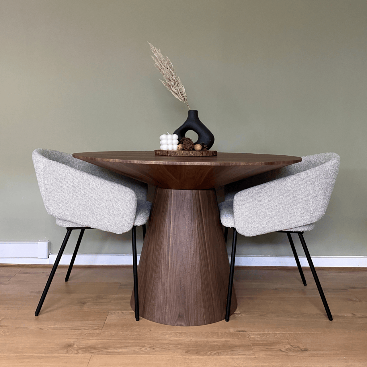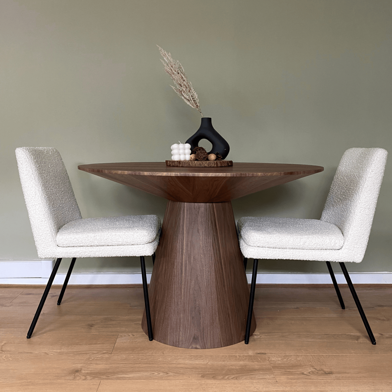 Lotus with its column design base and circular top is a statement on its own, add either the Lotus or the Iris chairs and it's a marvellous combination.