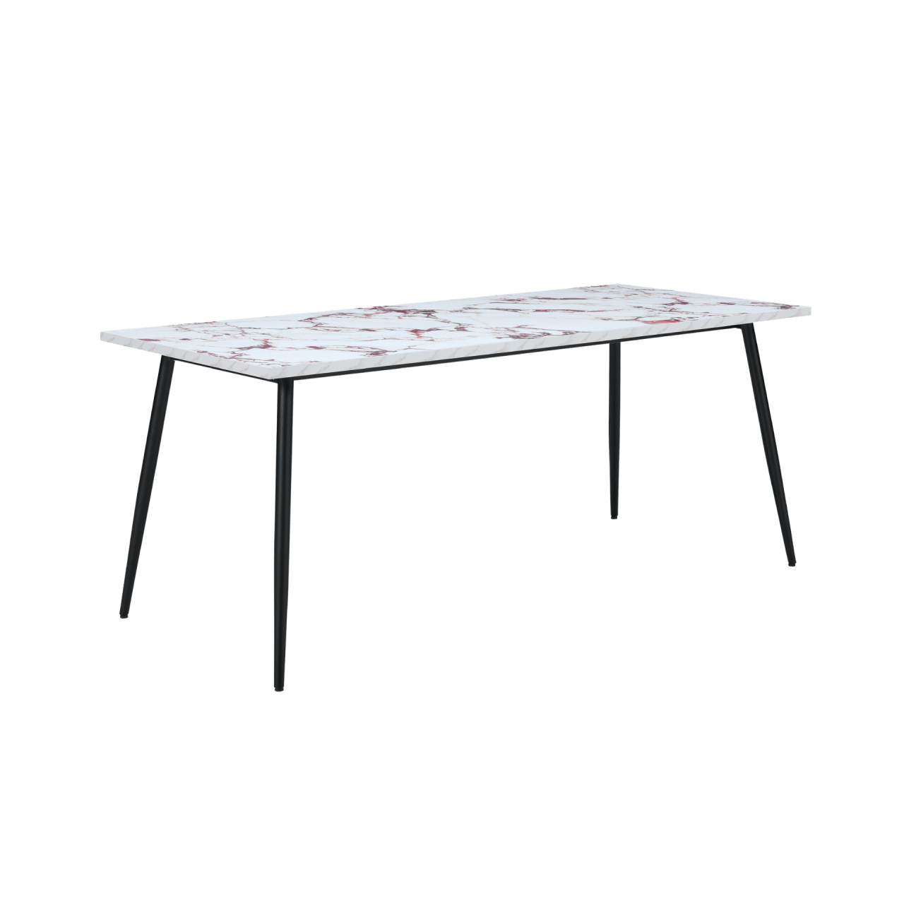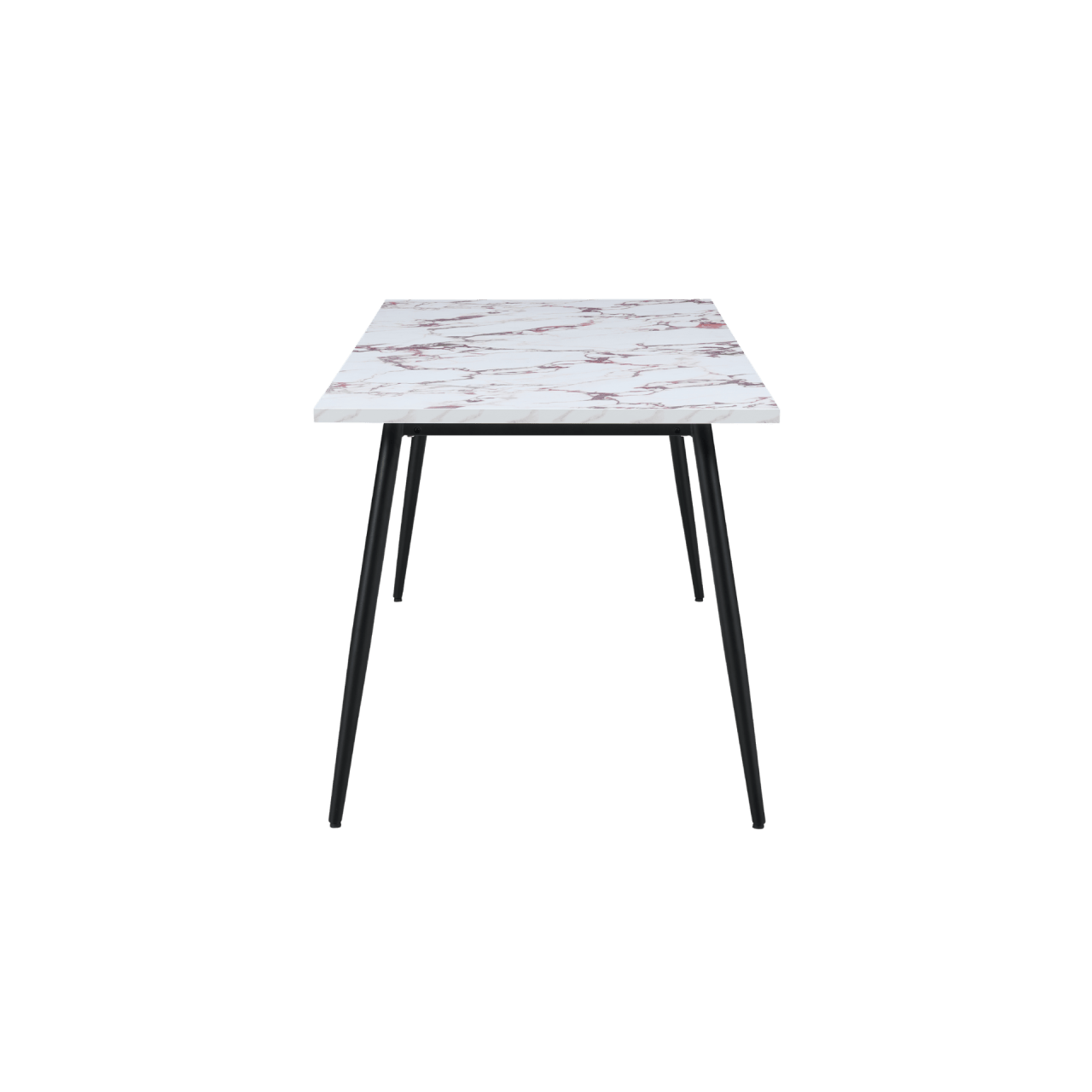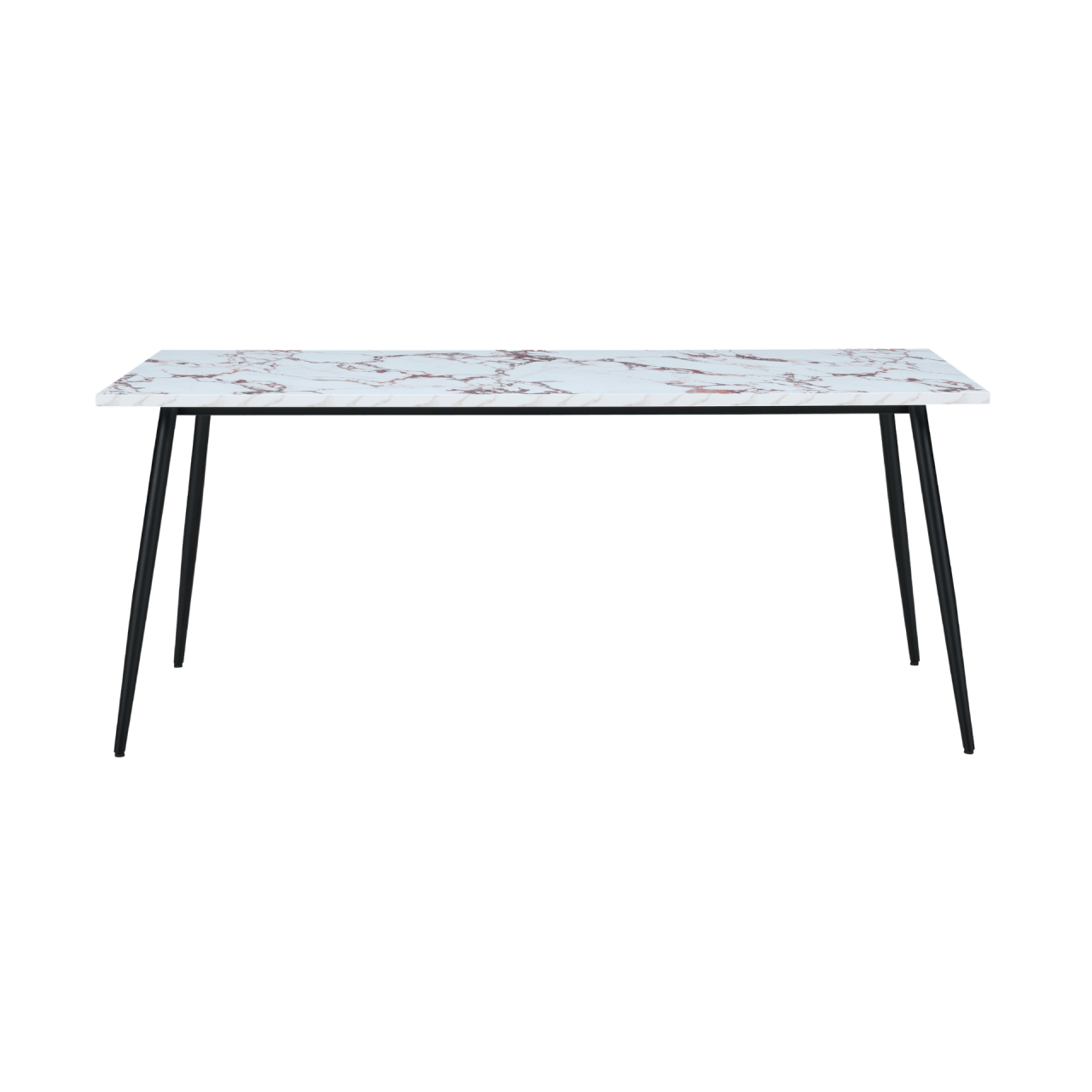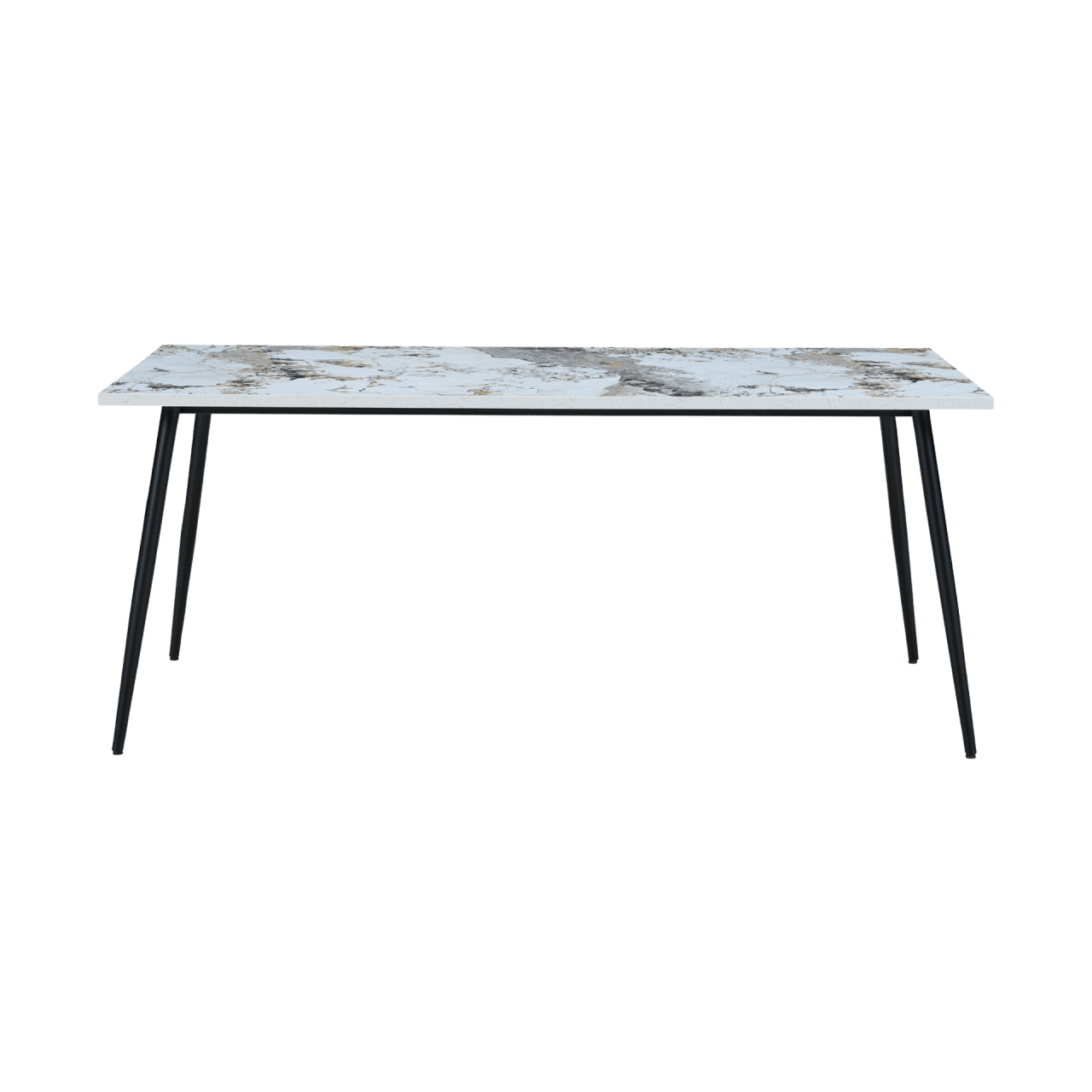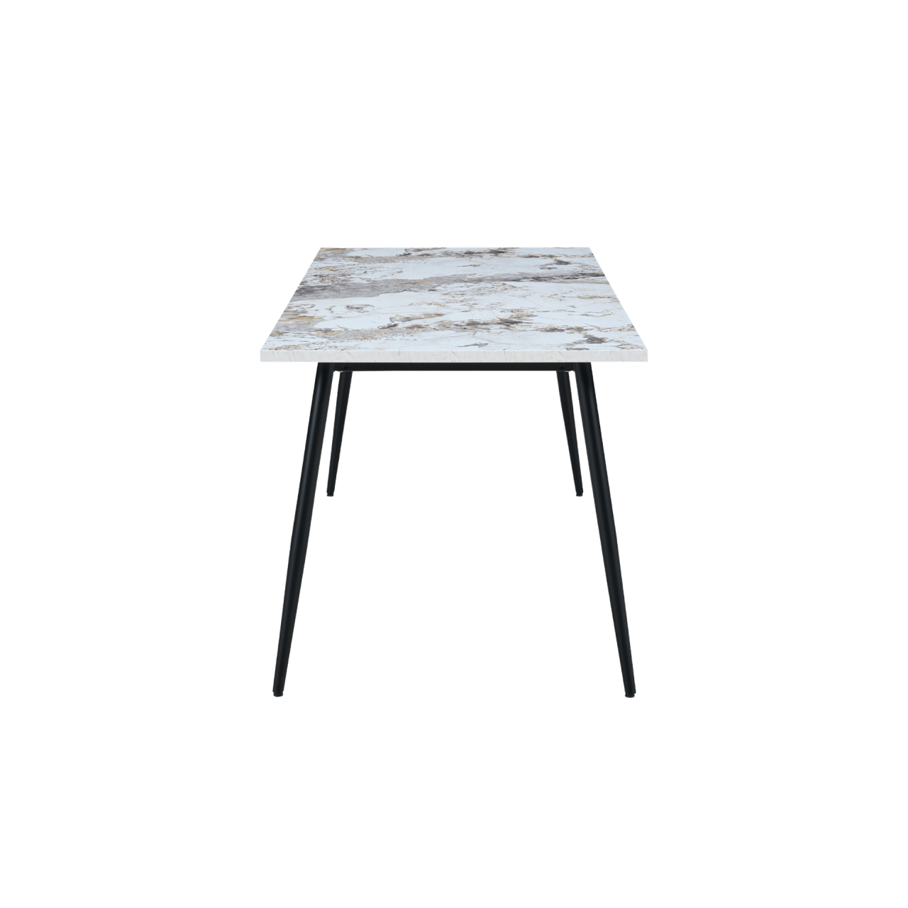 The Horizon Large Dining Table features an elegant marble-effect finish, perfect for spacious, stylish dining areas. Its generous surface comfortably seats up to 8 people. Supported by sturdy, tapered matt black metal legs, this table combines sophistication with practicality. Thoughtfully constructed with durable and eco-friendly materials, it is designed to support sustainable living.
